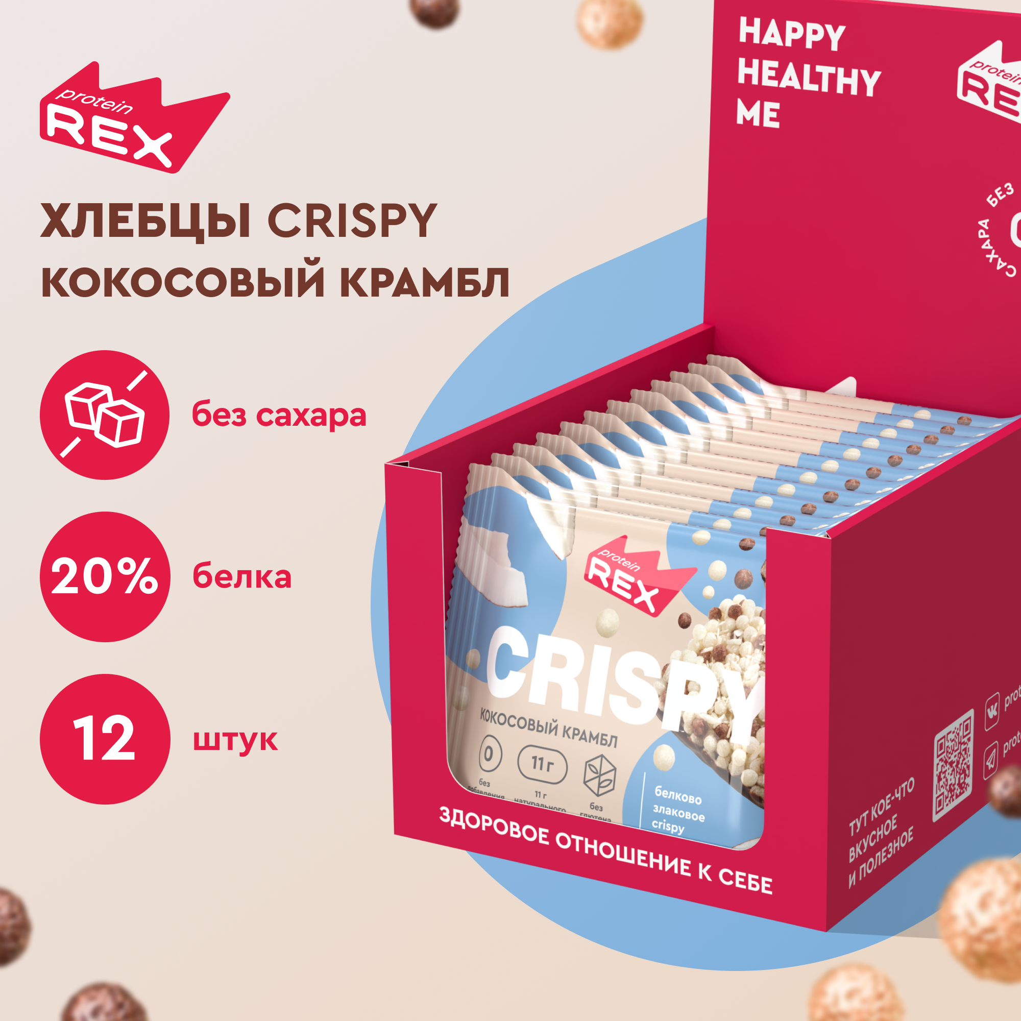 10 цен на Хлебцы протеиновые ProteinRex Crispy Кокосовый крамбл без сахара, 12шт х 55 г, 190 ккал, десерт, спортивное питание, ПП сладости, спортивное печенье