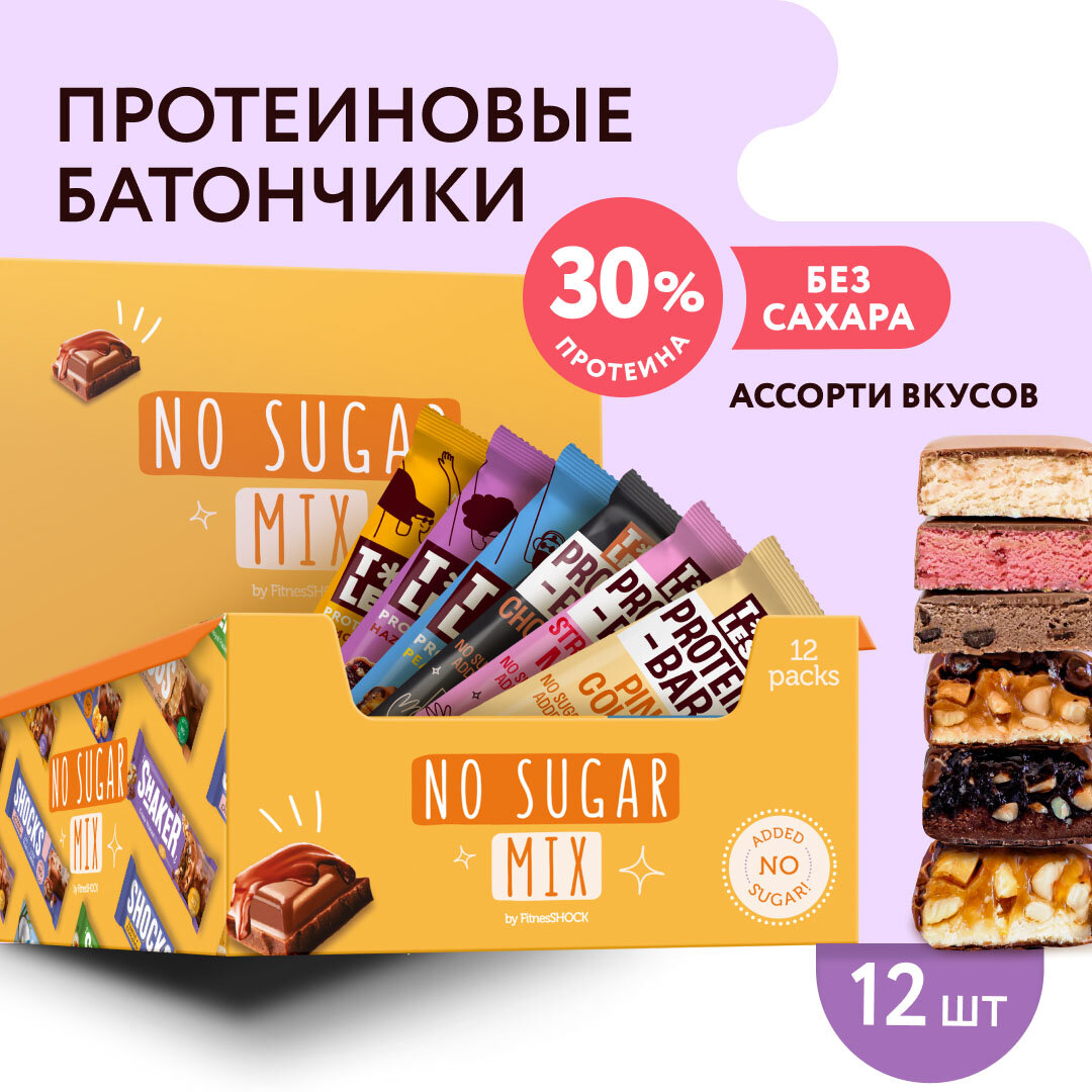 Протеиновые батончики без сахара FitnesSHOCK TOPLESS ассорти все вкусы 12 шт 826 ₽