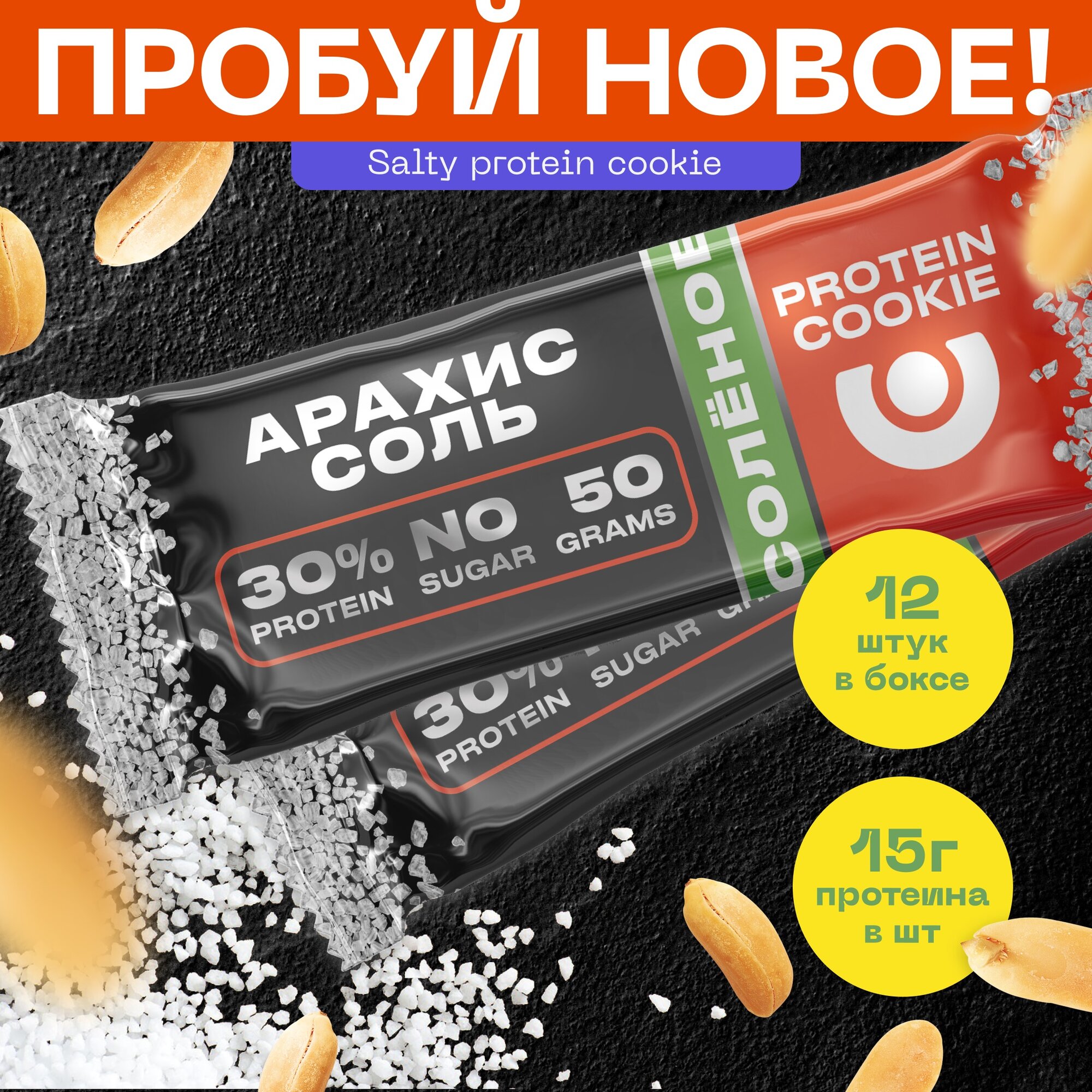 10 цен на Протеиновое печенье Pureprotein Salty Protein Cookie соленое с высоким содержанием белка со вкусом Арахис Соль 12шт*50г