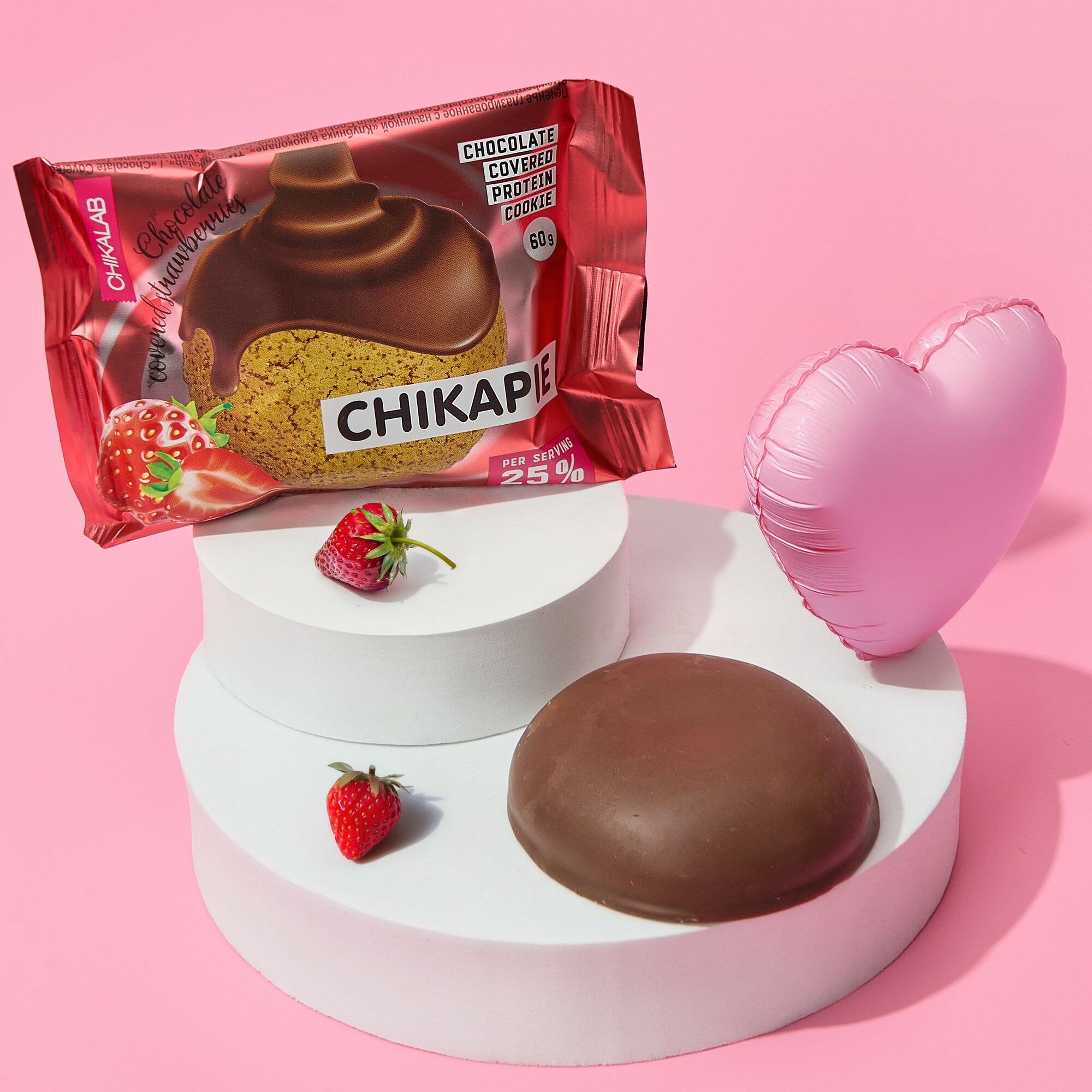 CHIKALAB CHIKAPIE Протеиновое печенье без сахара в шоколаде с начинкой "Клубника - шоколад", 9шт х 60г информация: