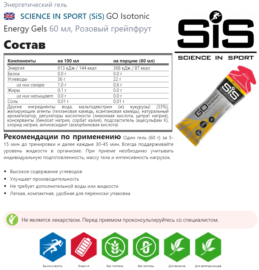 Отзывы на Гель питьевой SCIENCE IN SPORT (SiS) GO Isotonic Energy Gels 3 x 60 мл, Розовый грейпфрут