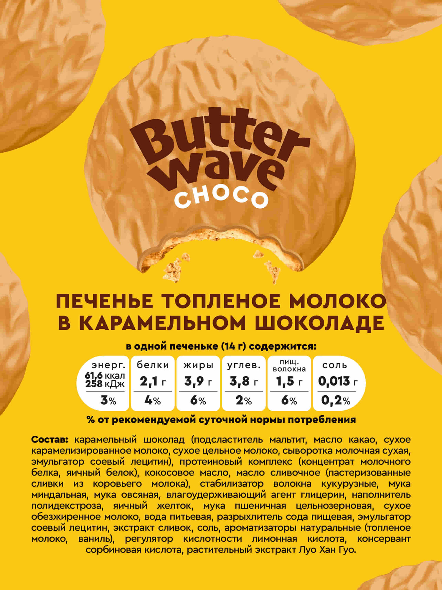 Печенье MR. DJEMIUS Zero CHOCO Butter Wave, Топленое молоко в карамельном шоколаде (8шт по 42г) информация: