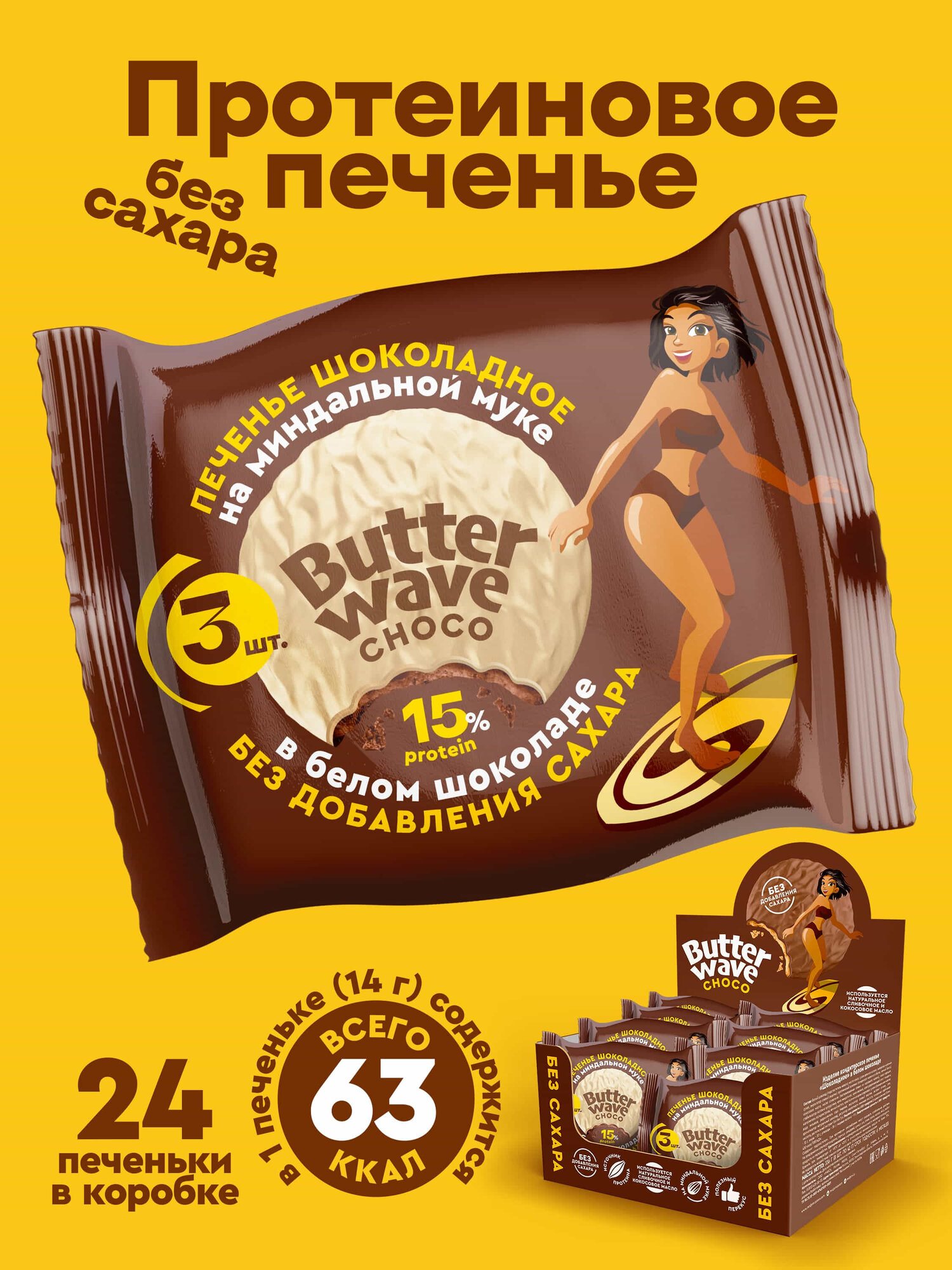 Протеиновое печенье без сахара "Butter Wave" Шоколадное , коробка 32штуки (8 уп по 4шт) 785 ₽