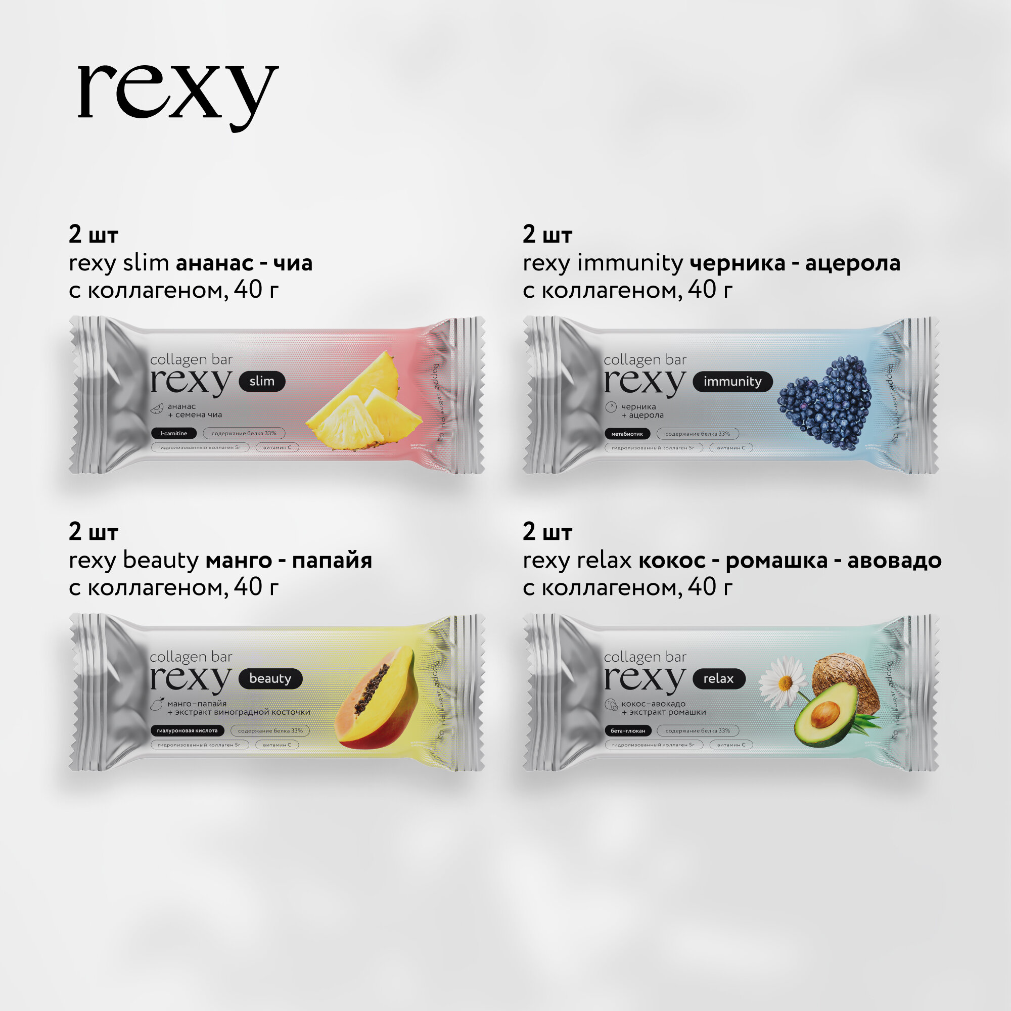 Протеиновые батончики rexy с коллагеном Ассорти мини 8шт x 40г, 140 ккал ПП сладости, низкокалорийные спортивные батончики ProteinRex информация: