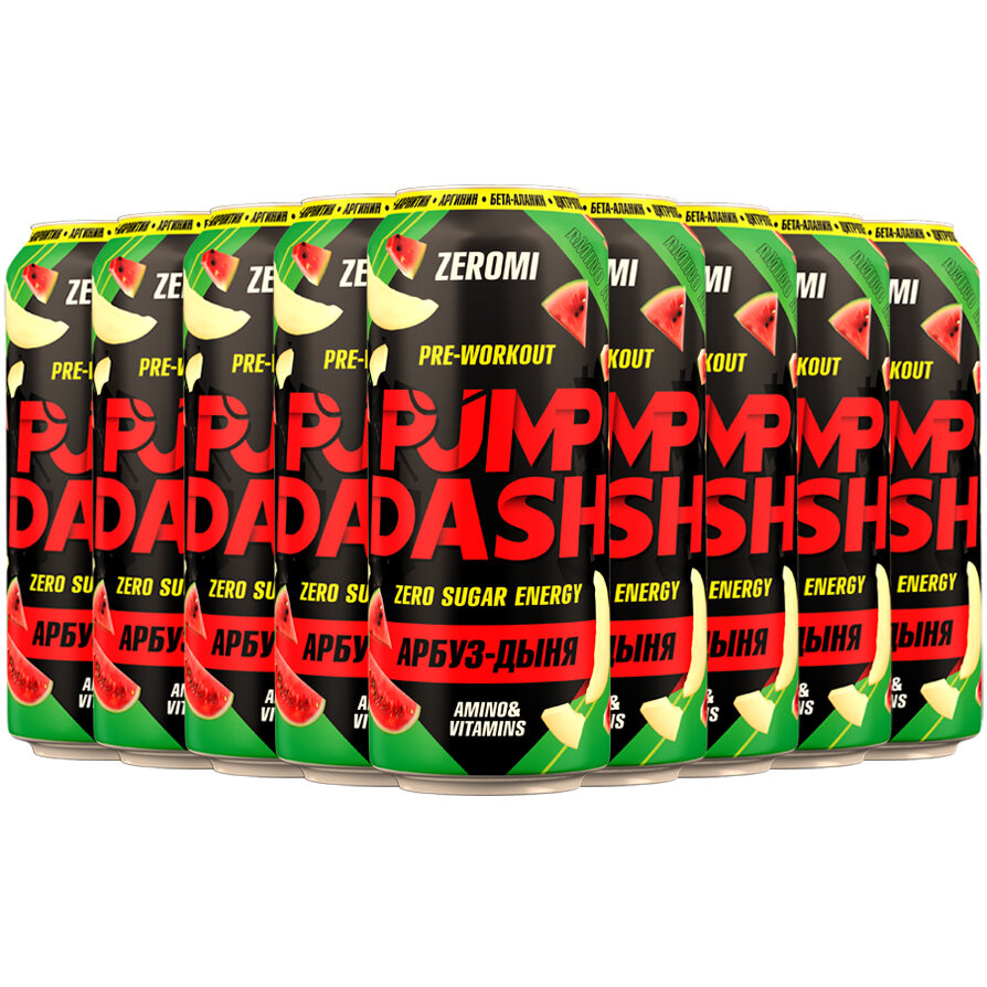10 цен на Энергетик спортивный Zeromi Pre-Workout Pump Dash, 12 шт х 500 мл, арбуз-дыня
