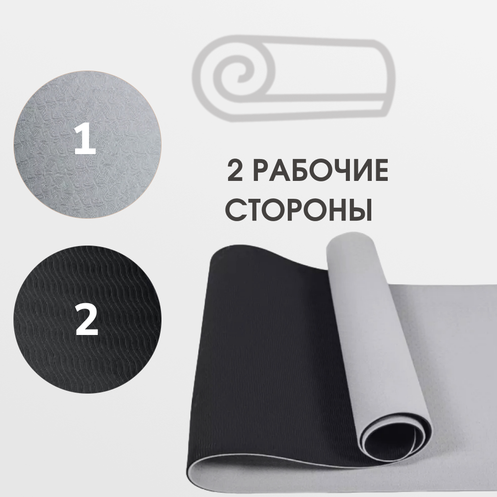 Коврик для йоги и фитнеса Yoga Island, нескользящий, ТПЕ, 0.6 см, 183×61 см, серый информация: