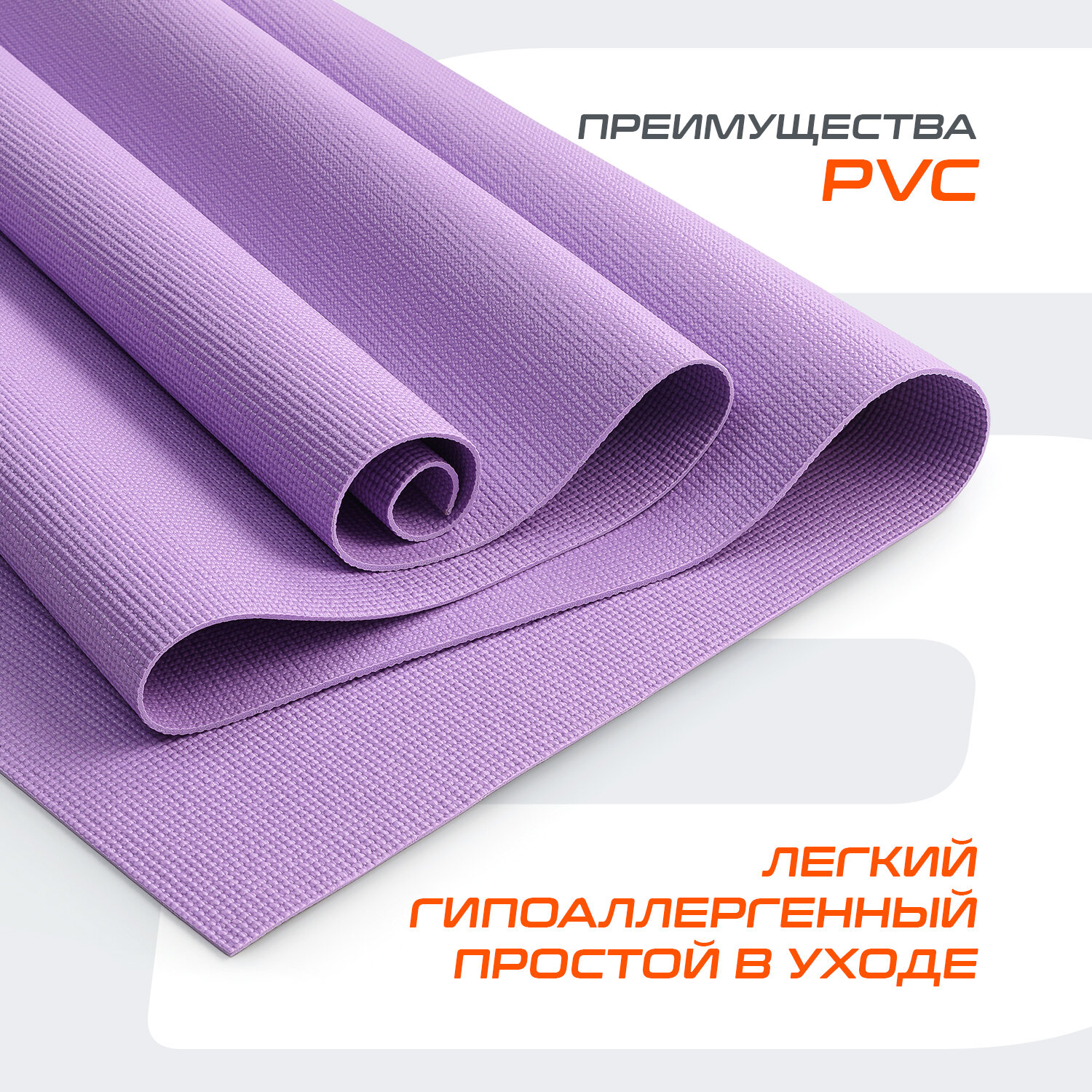 Коврик для йоги и фитнеса FM-101, PVC, 173x61x0,3 см, фиолетовый пастель информация:
