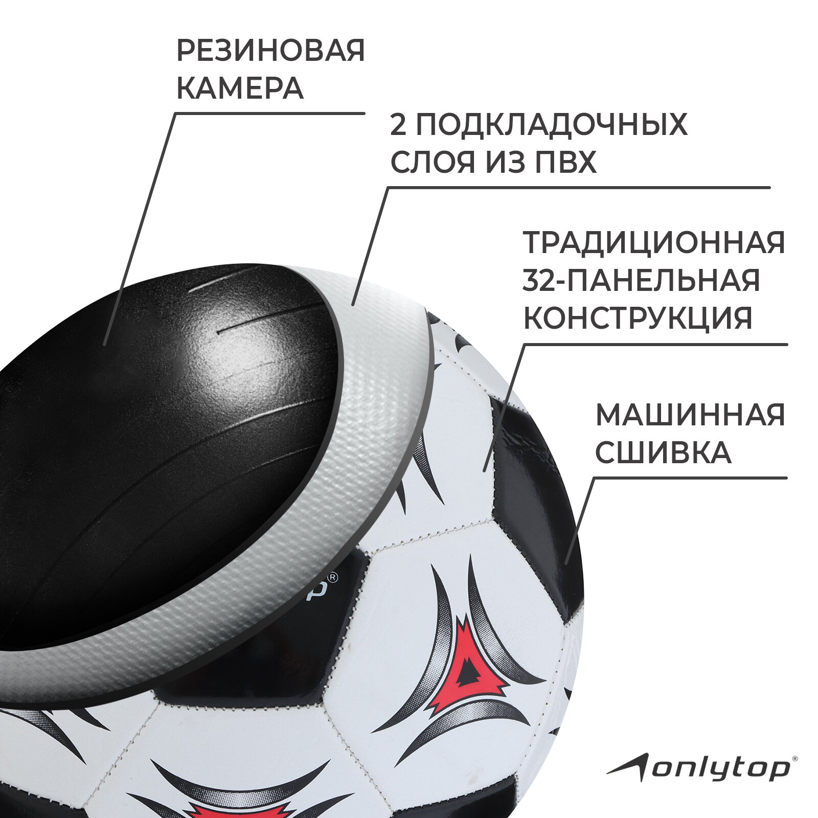 Мяч футбольный ONLITOP RUSSIA для тренировок и спортивных игр, размер 5, 32 панели, PVC, 2 подслоя, машинная сшивка, 260 г