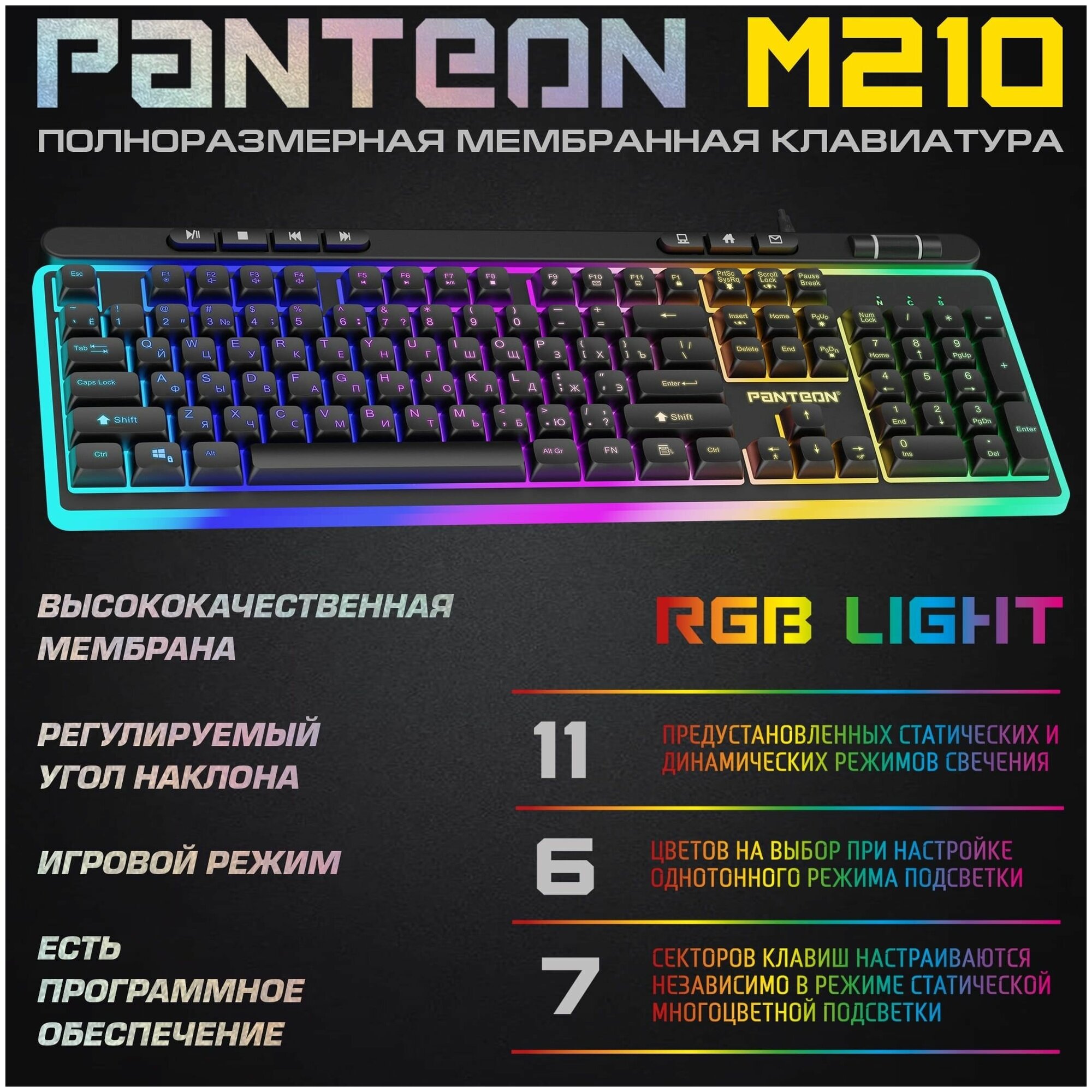 Мембранная игровая клавиатура с зонированной LED-подсветкой RGB LIGHT PANTEON M210 (112кл), черная