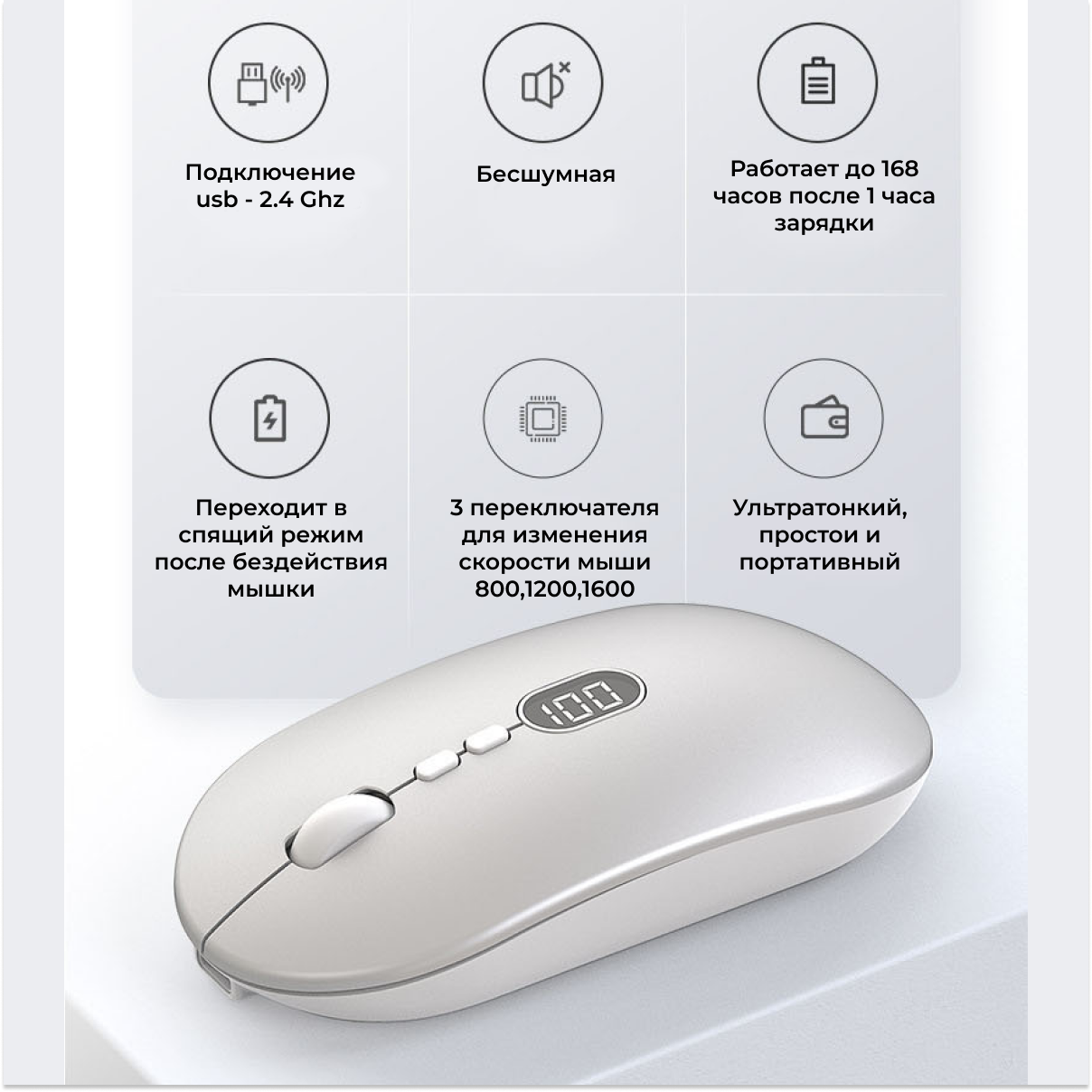 Отзывы на Мышь беспроводная на аккумуляторе для компьютера и ноутбука, usb мышка, wireless digital mouse DI-W30, бесшумная с индикатором заряда, белая