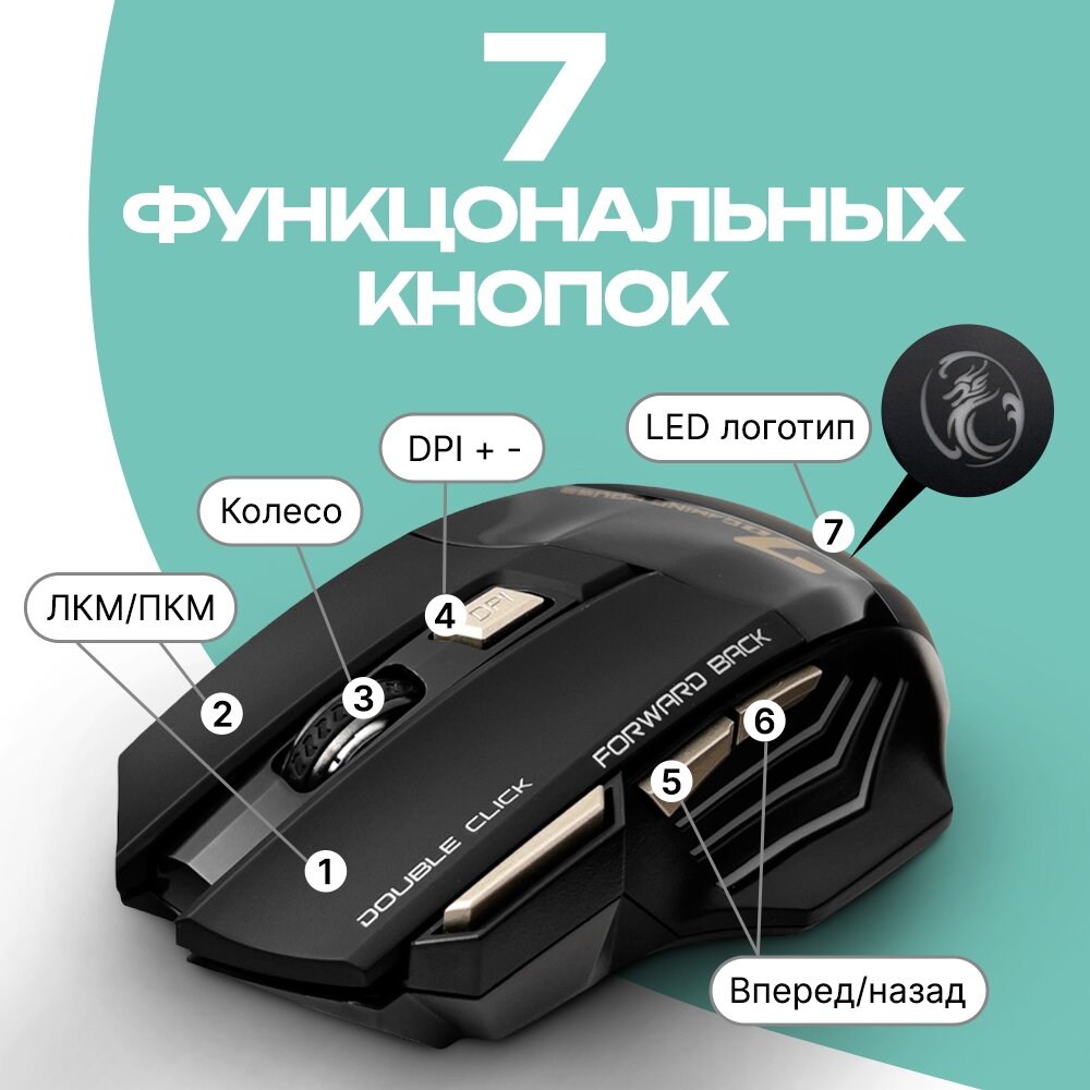 Игровая мышь беспроводная GW X7 NB, 3200DPI , RGB, бесшумный клик, 2.4g,цвет Черный. (Каталог) информация: