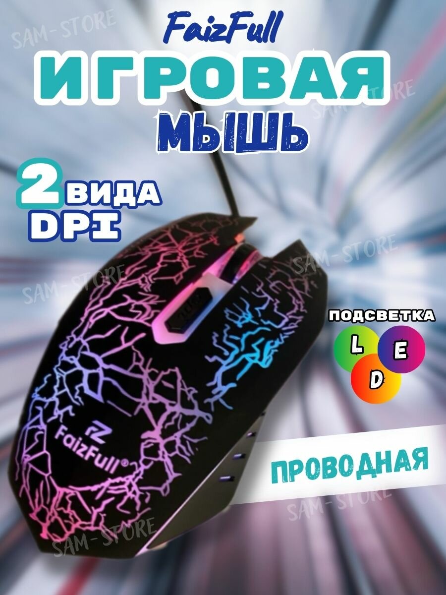 Игровая проводная мышь Faizfull с рисунком и светодиодной подсветкой 800 - 1600 DPI информация: