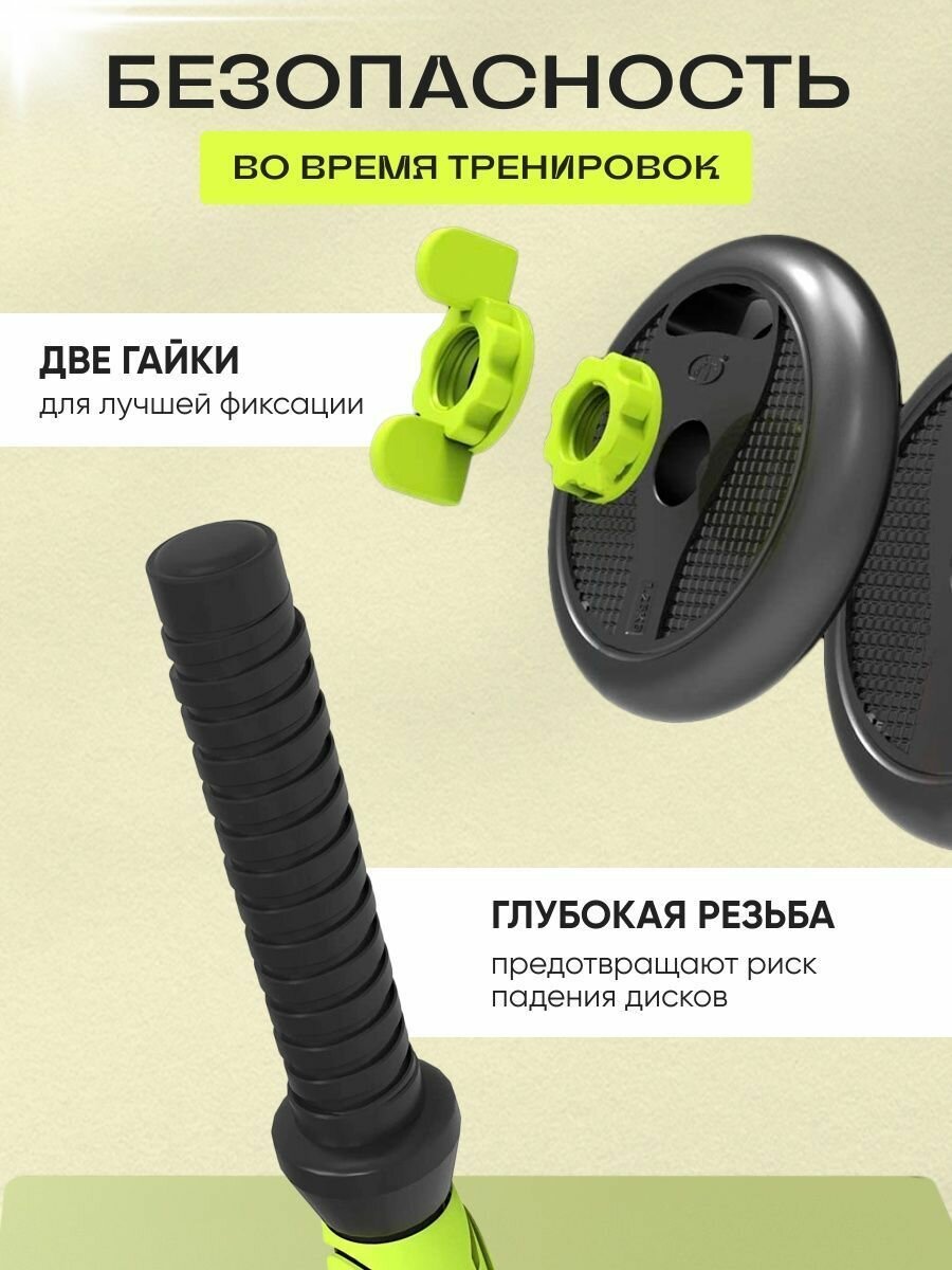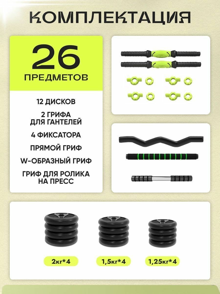 10 цен на Гaнтeли набор, 2 гантели по 10 кг. + штанга. Гaнтeли разборные(цeмент/плaстик) общий вес 20кг