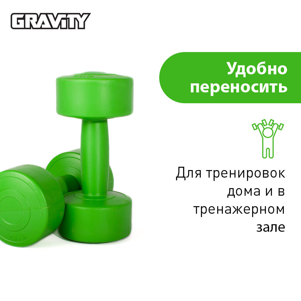 10 цен на Виниловые гантели Gravity, круглые, 2 кг, пара, зеленый