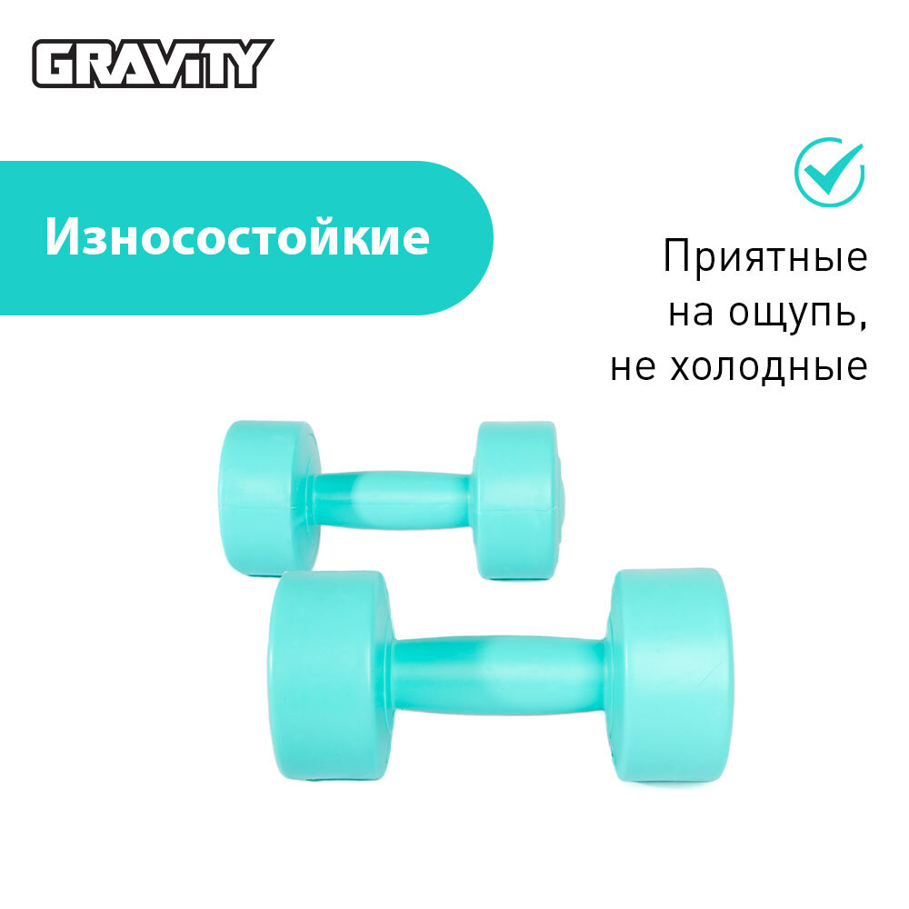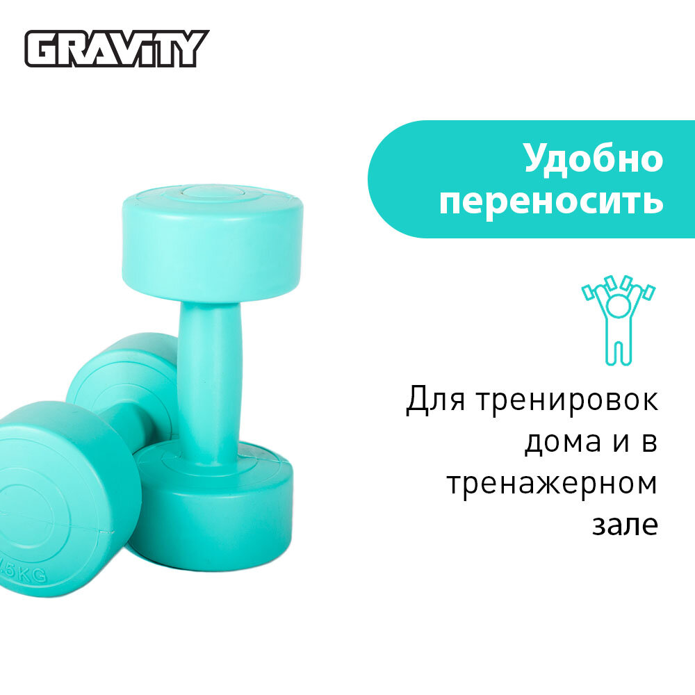 10 цен на Виниловые гантели Gravity, круглые, 1.5 кг, пара, бирюзовый