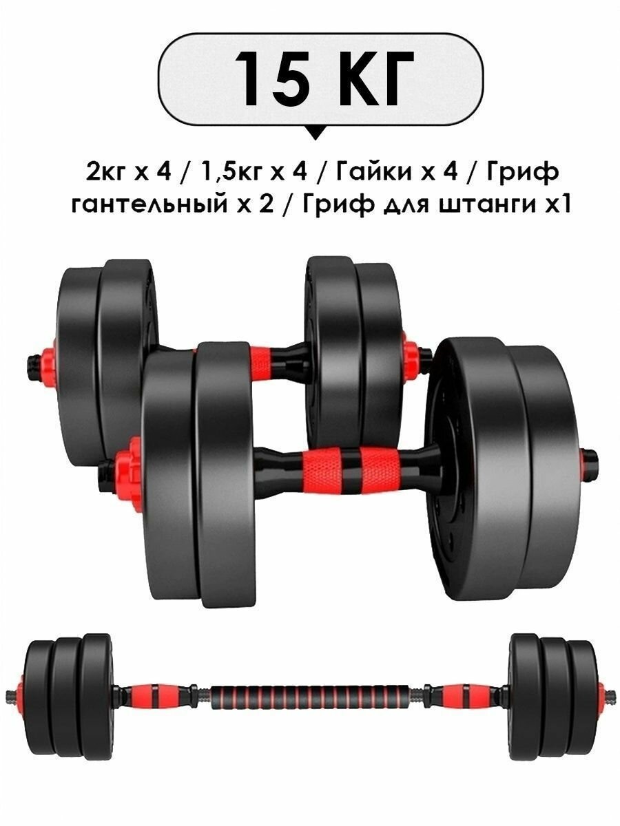 Гантели разборные с грифом набор 15 кг, 2 шт по 7,5 кг информация: