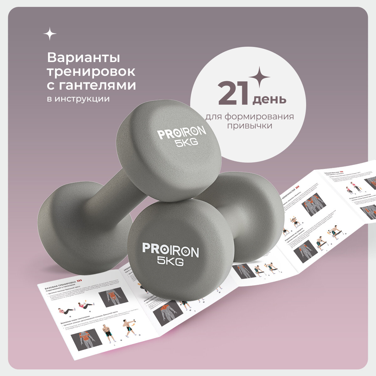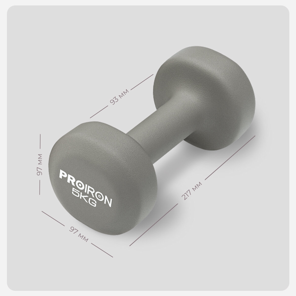 Гантели 5 кг 2 штуки неопреновые PROIRON, набор для фитнеса, серые информация: