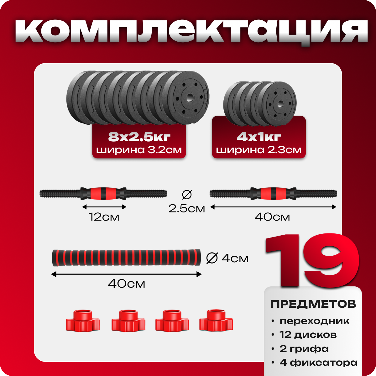 10 цен на Гантели разборные 2 шт по 12 кг+ штанга