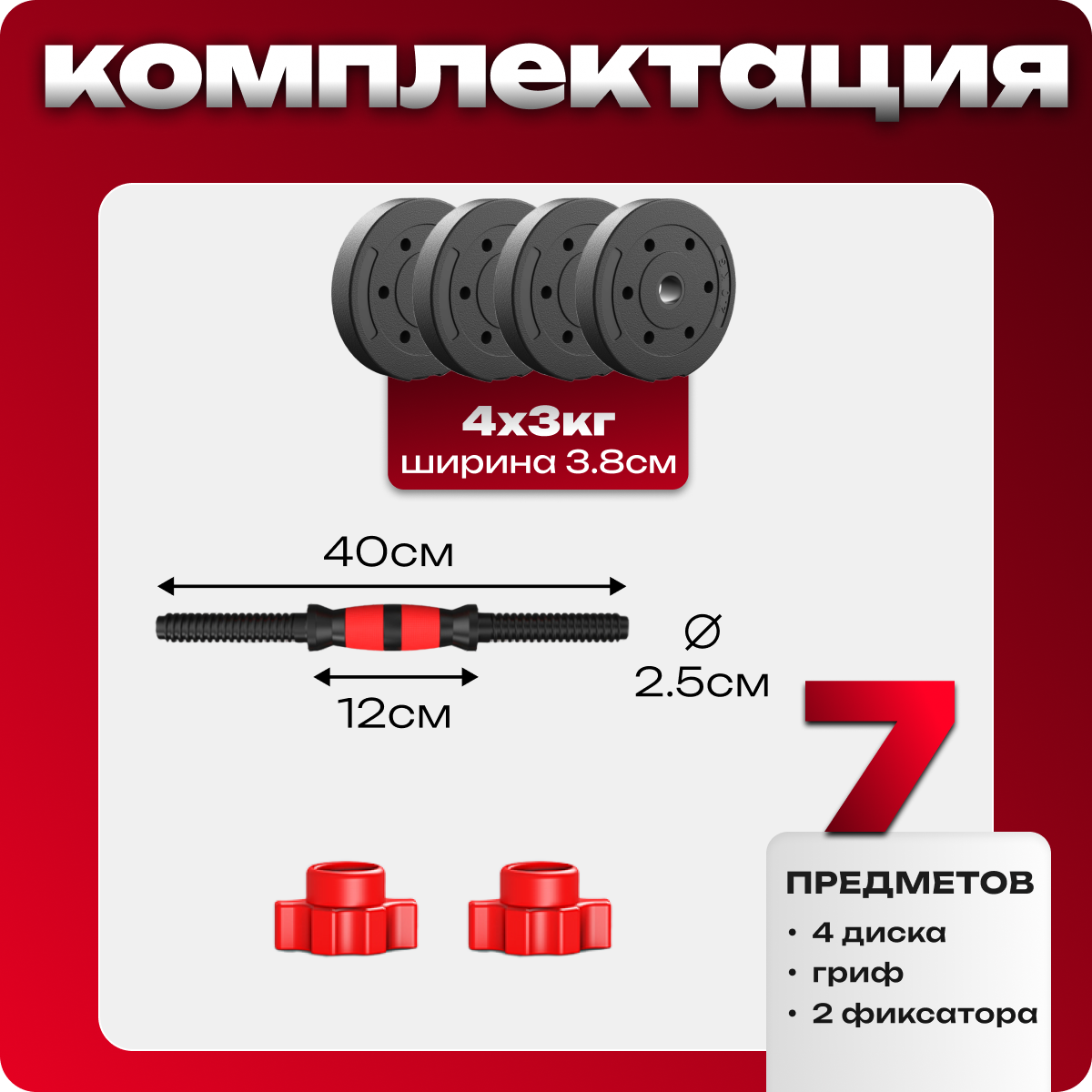 Гантели разборные 2 шт по 12 кг+ штанга 5 453 ₽