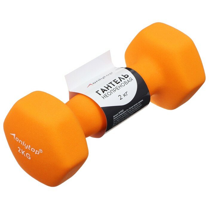 Гантель неопреновая ONLYTOP, 2 кг, цвет оранжевый информация: