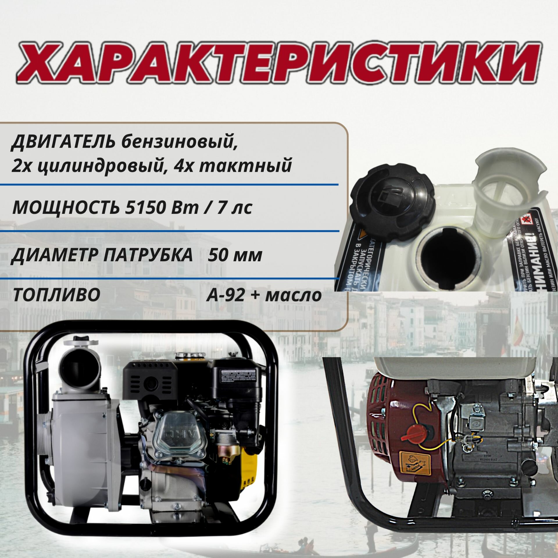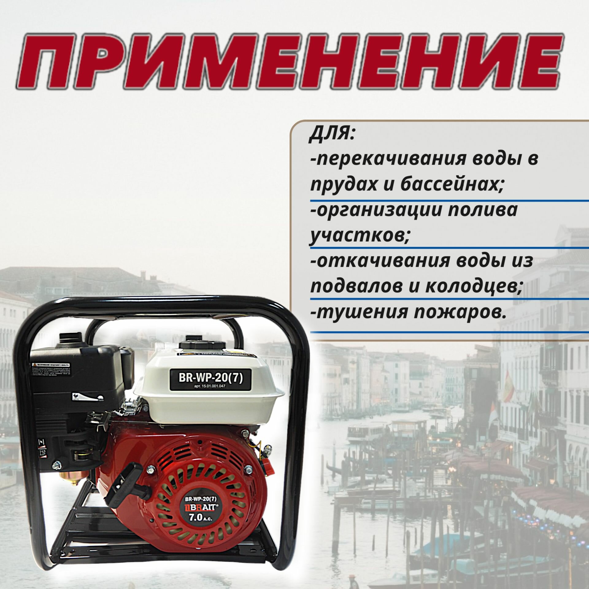 Мотопомпа бензиновая BRAIT BR-WP-20(7), насос для откачки воды, для чистой воды, 7 лс информация: