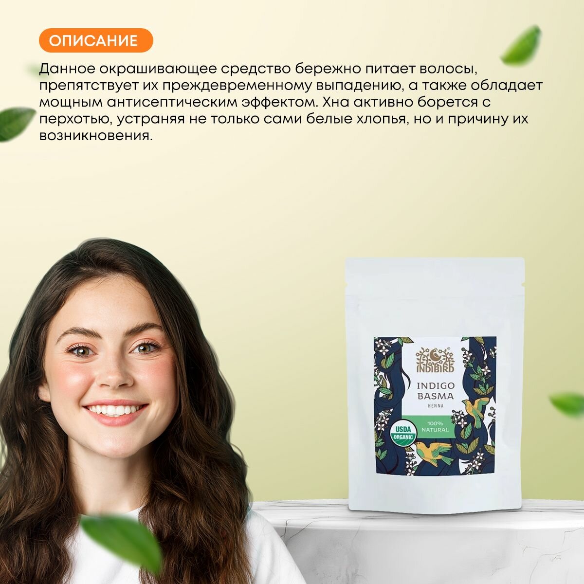 Натуральная хна для волос Басма (henna) Indibird | Индибёрд 50г