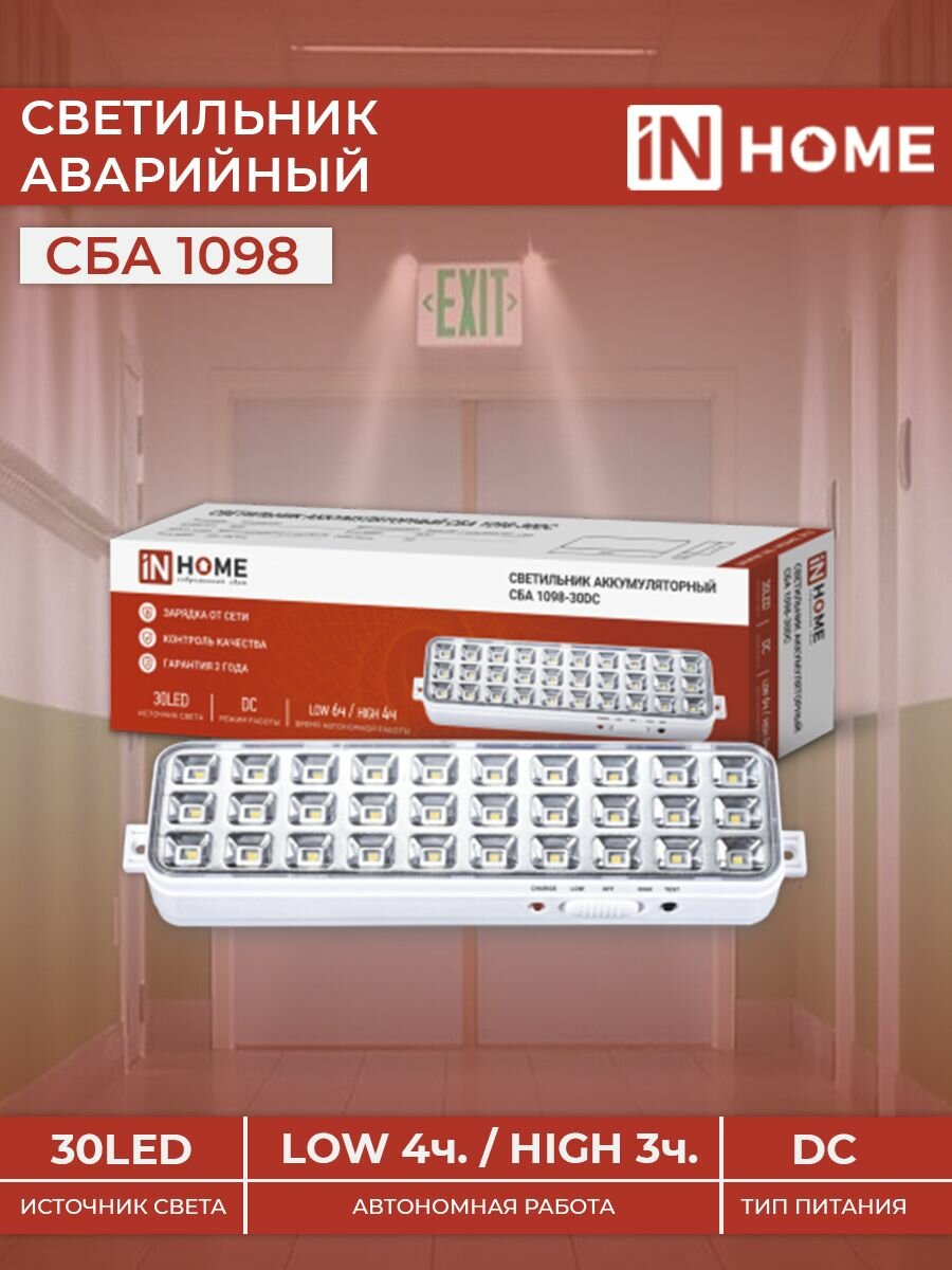 Светильник светодиодный аварийный СБА 1098-30DC 30 LED 1.2Ah lithium battery DC IN HOME информация: