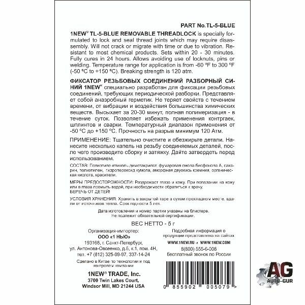 Средство для фиксации винтов 1 new TL5BLUE информация: