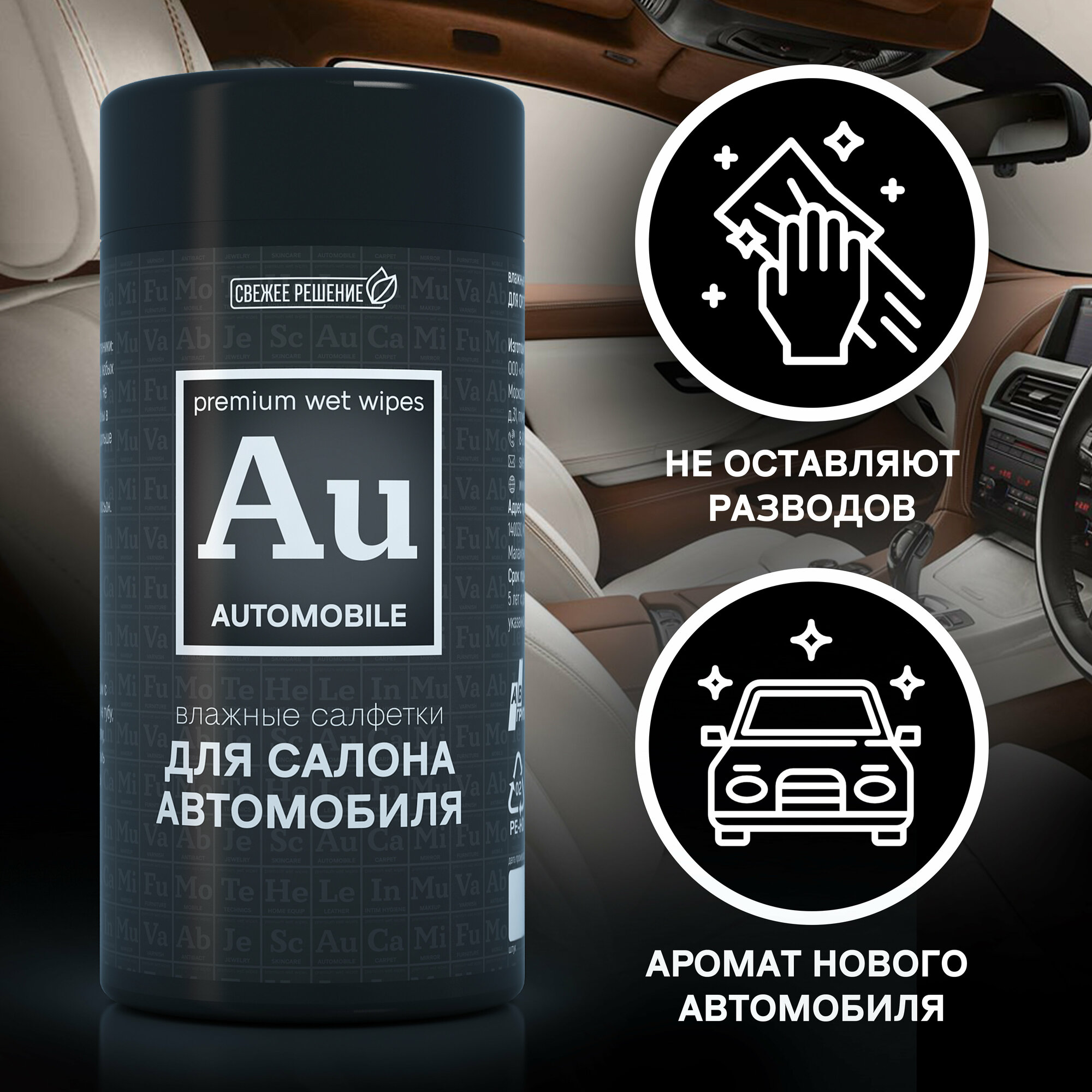 | Дополнительная информация | салфетки антистатические, антибактериальные для автомобиля, влажные в пластиковой тубе, диспенсере, для очистки салона авто, кожи, пластика, текстиля, фар и стекол |