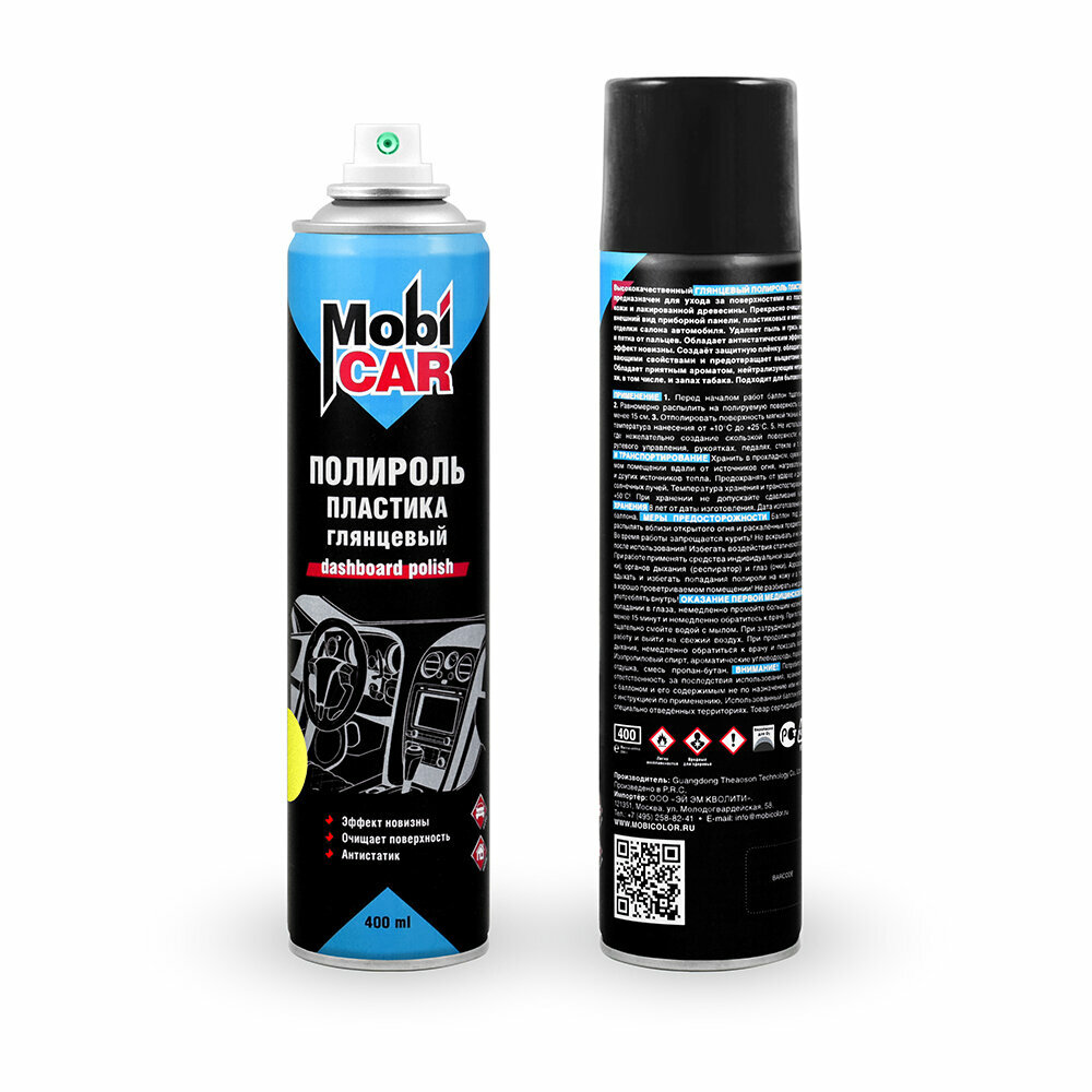 Аэрозольный глянцевый полироль пластика MobiCAR 400 мл, Новая машина 336 ₽