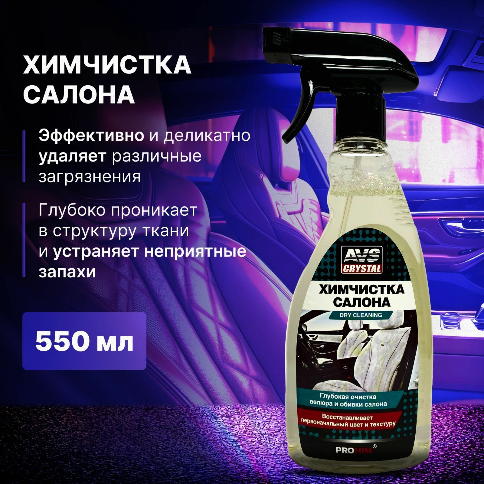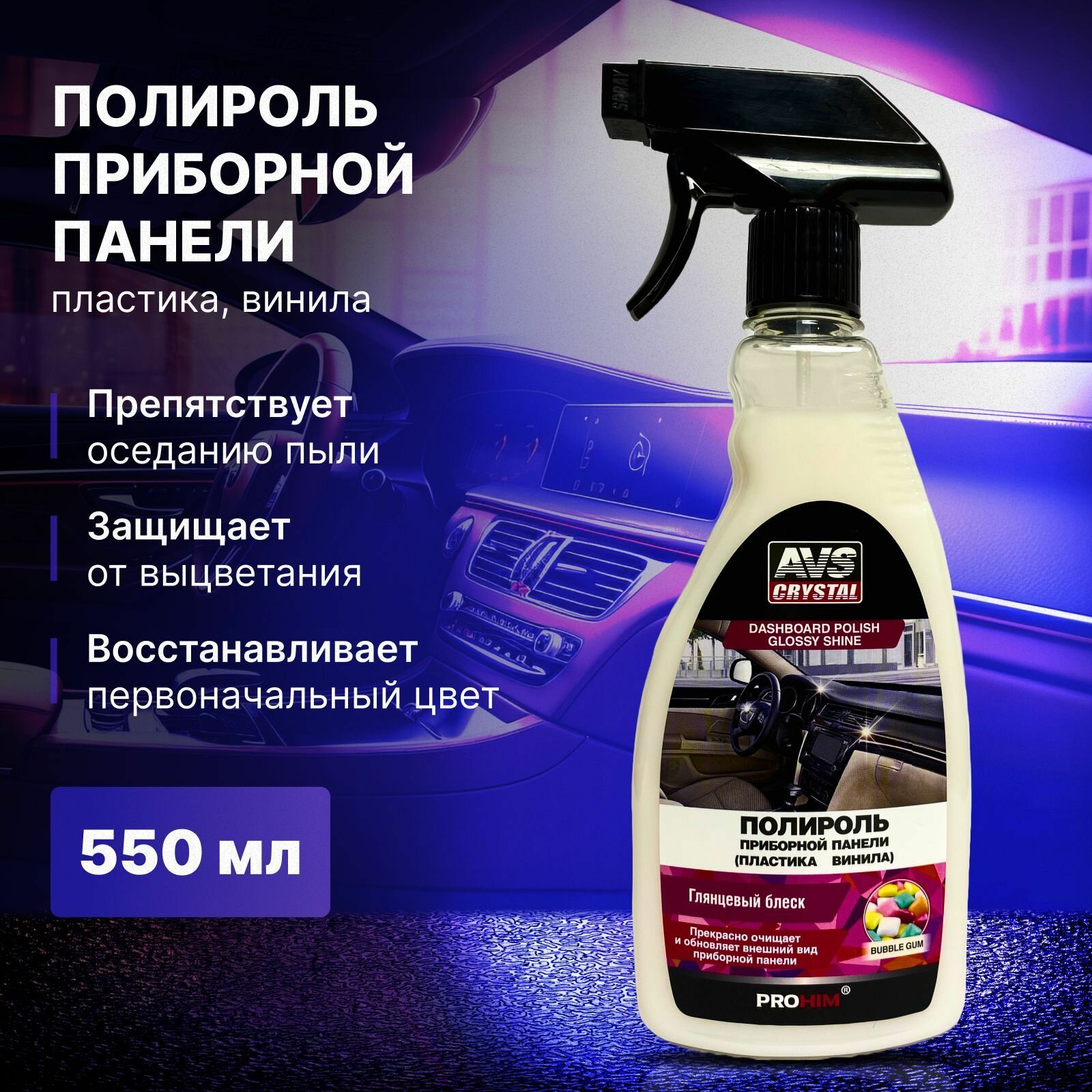 | Состав | Химчистка салона (триггер) 500 мл. AVS AVK-021 Полироль для приборной панели "БАБЛ-ГАМ" 500 мл (триггер) AVS AVK-682 Очиститель стекол универсальный (триггер 500 мл) AVS AVK-689 микрофибра 3 шт |