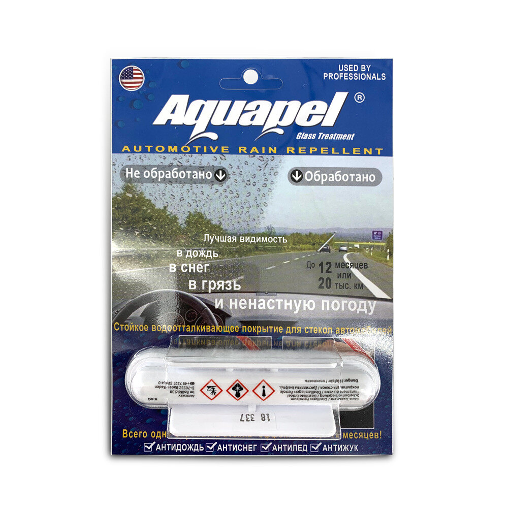 Aquapel (Аквапель) Антидождь, водоотталкивающее покрытие для стекол, блистер информация: