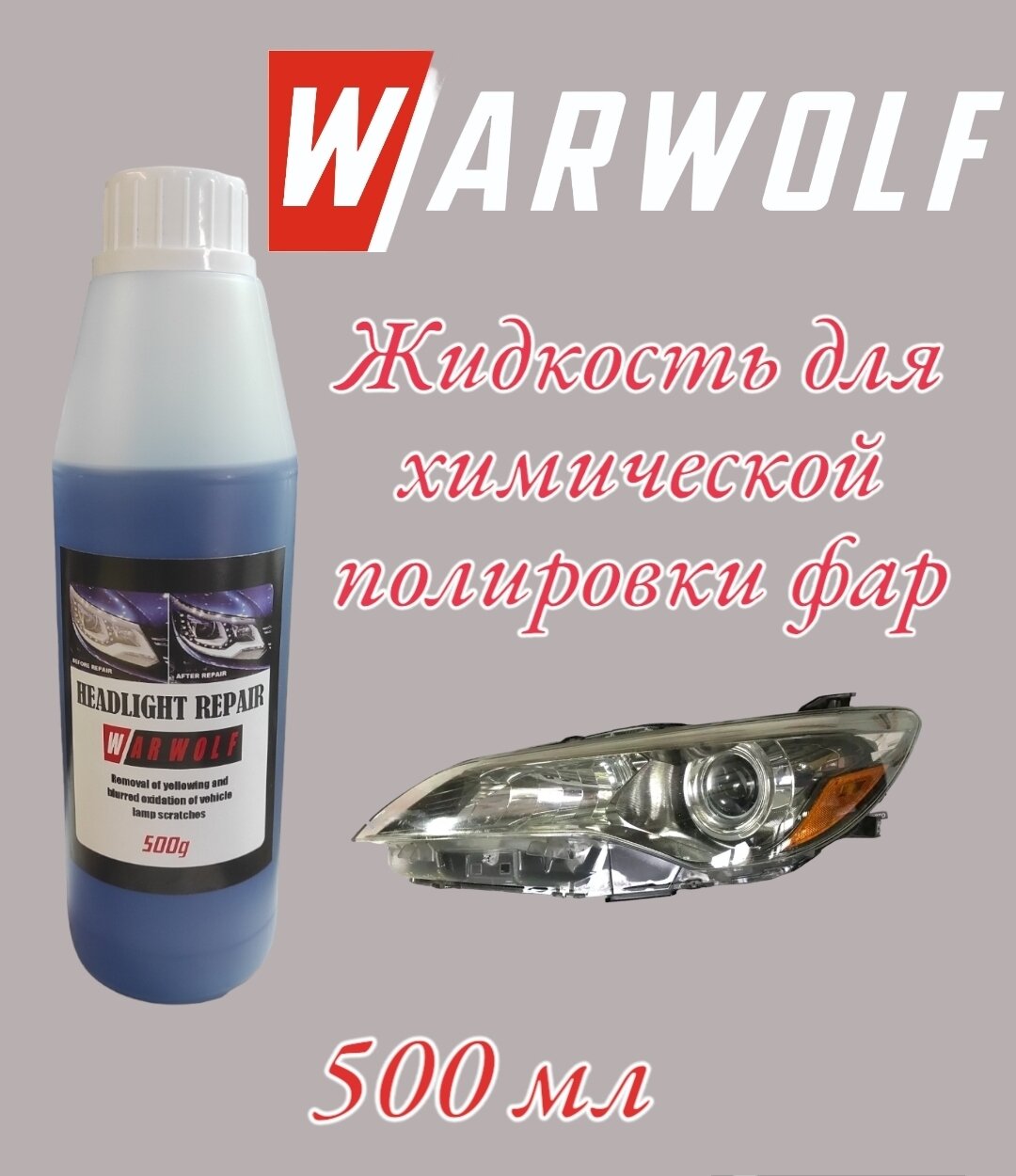 Отзывы на Жидкость для химической бесконтактной полировки, восстановления и реставрации пластиковых фар и фонарей паром, 500 мл.