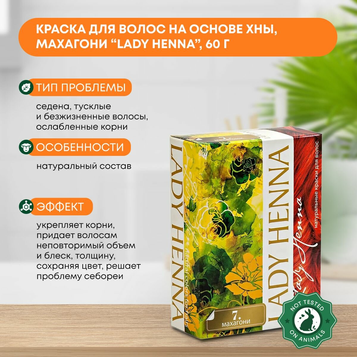 Краска для волос на основе хны "Махагони" (№7) LADY HENNA 60 г