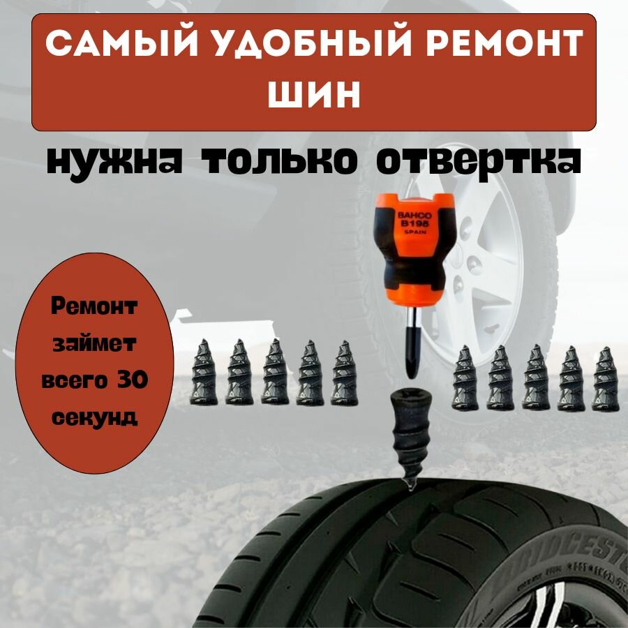 Отзывы на Ремкомплект для шин авто, набор для ремонта шин QBuy. Резиновые гвозди. Саморезы для ремонта шин 10 шт.
