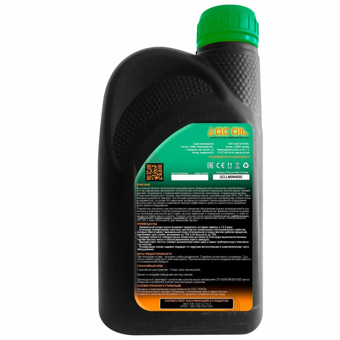 Вакуумное масло BM ISO(VG)100 синтетическое QC OIL Long Life металлоплакирующее, канистра 1л информация: