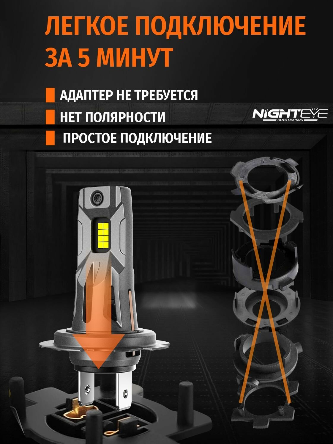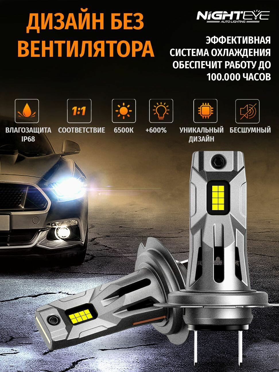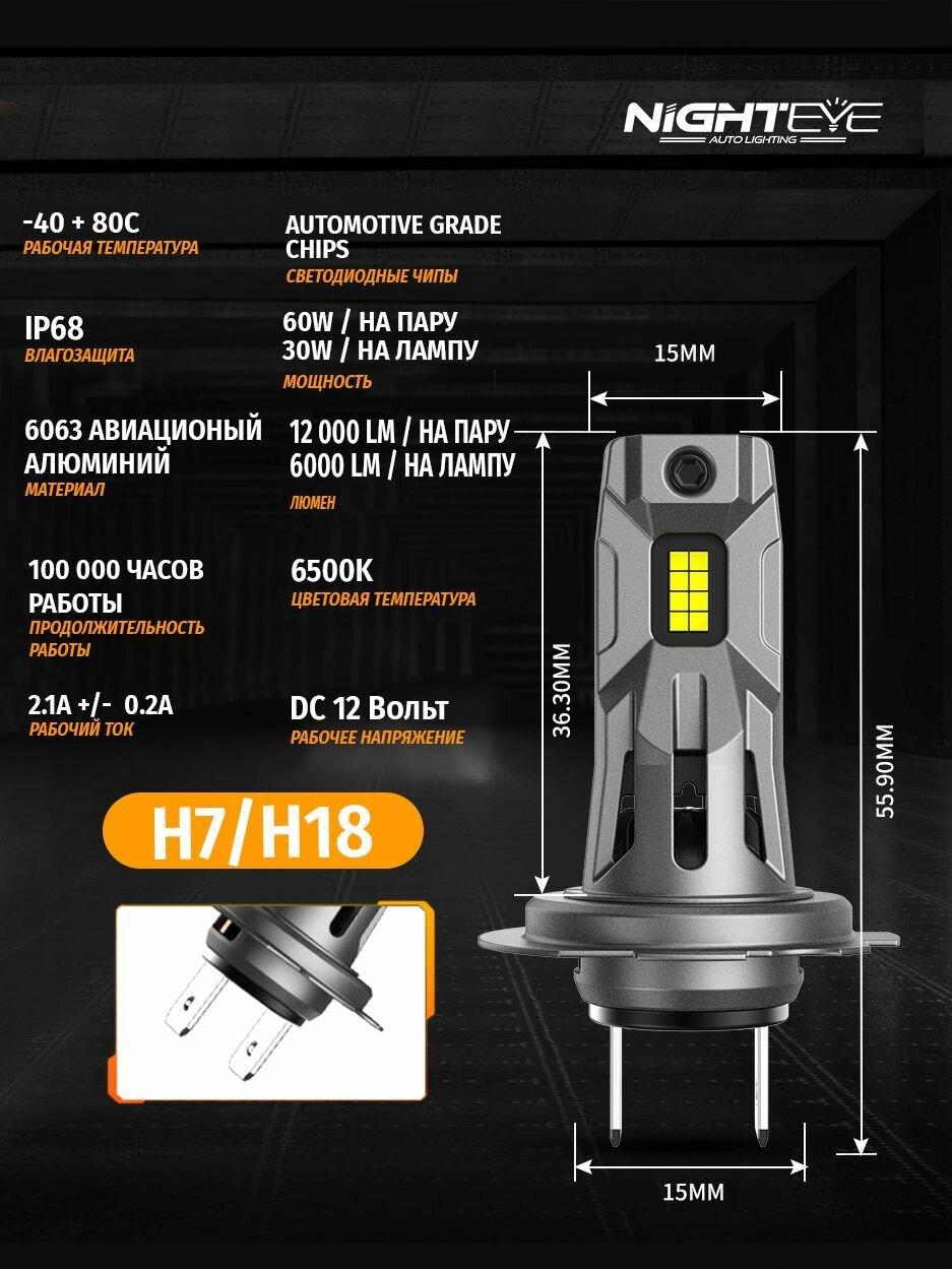 Отзывы на Светодиодная лампа Nighteye (Novsight) S5 H7 цоколь PX26d 60Вт 2шт 12000Лм 6500К белый свет LED автомобильная
