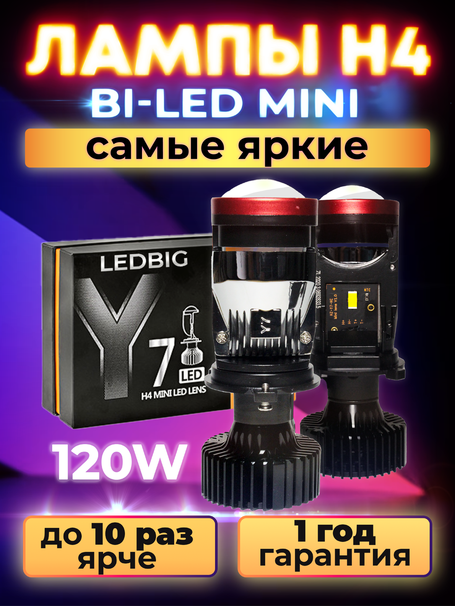 10 цен на Светодиодные мини линзы H4 Y7D, Led лампы H4 белые, Led H4, 6000k, 8000lm, Led линзы, без разбора фары