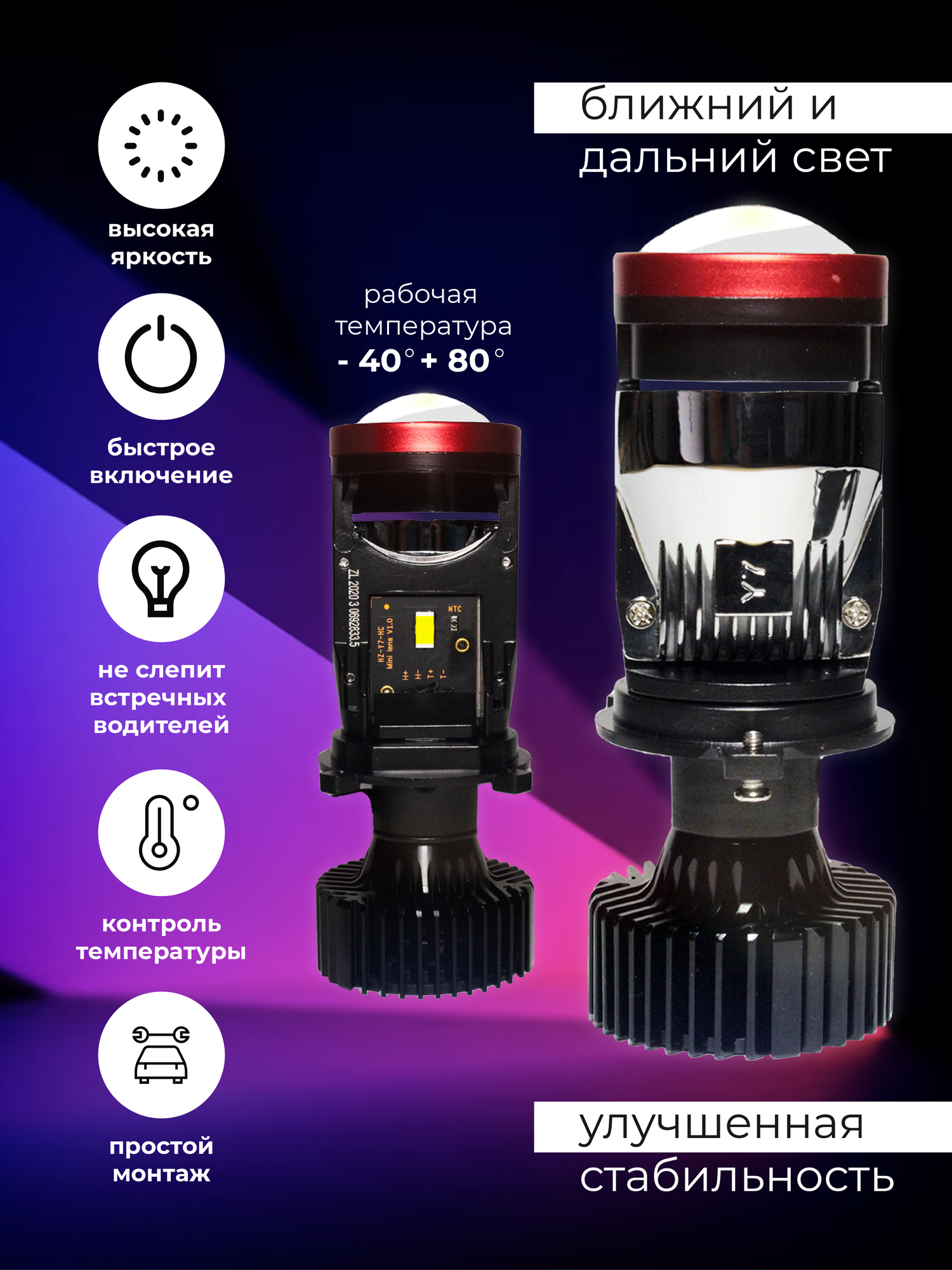 Отзывы на Светодиодные мини линзы H4 Y7D, Led лампы H4 белые, Led H4, 6000k, 8000lm, Led линзы, без разбора фары