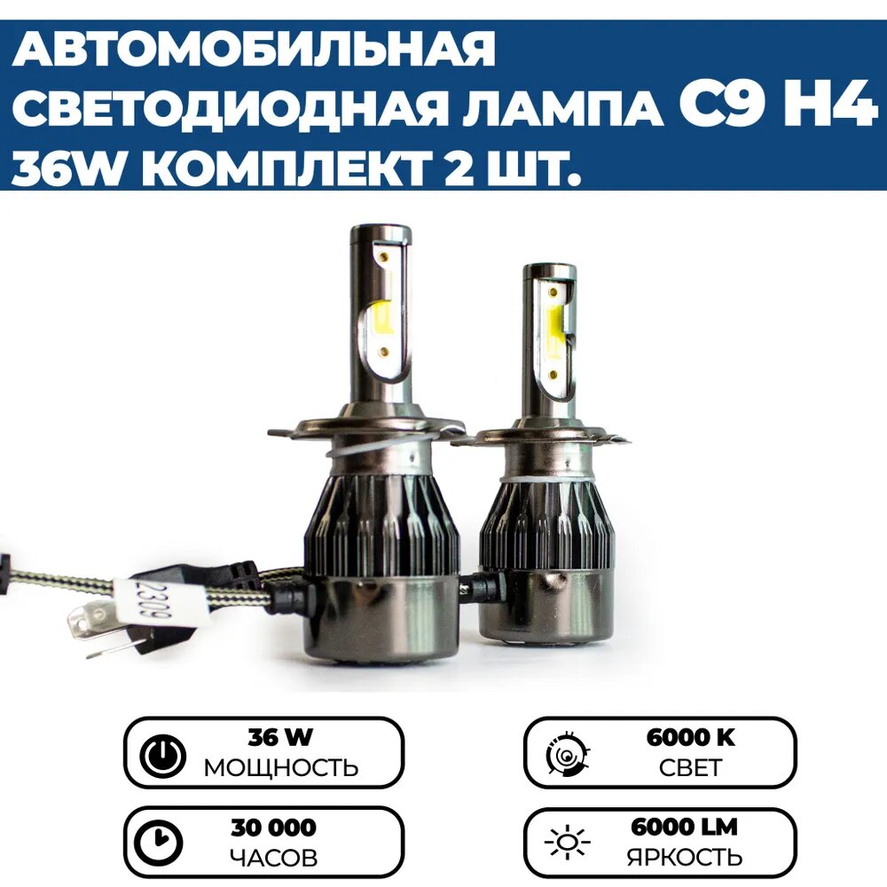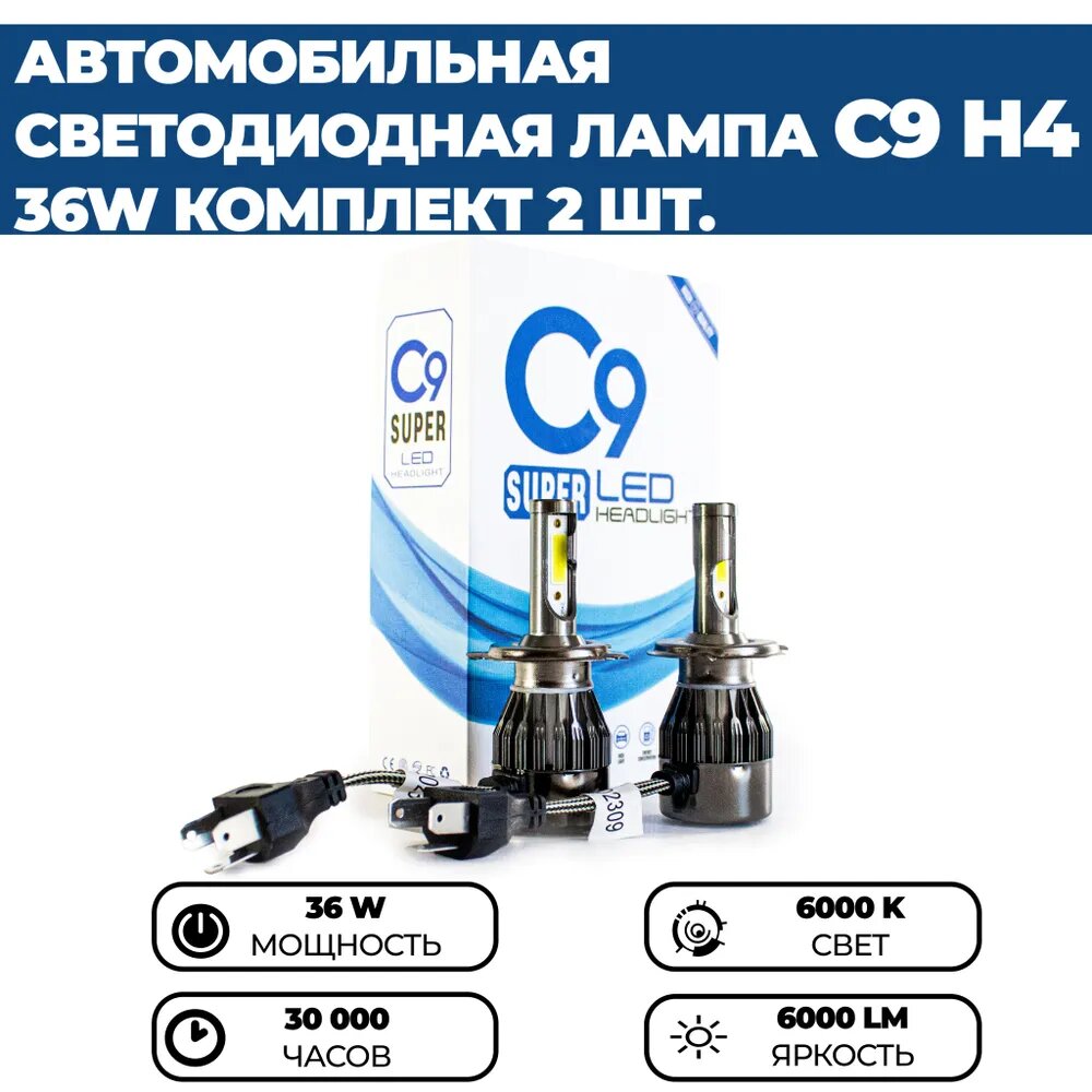 Светодиодные лампы Led HEADLIGHT C9 Super H4 (ближний, дальний свет), 2 шт. информация: