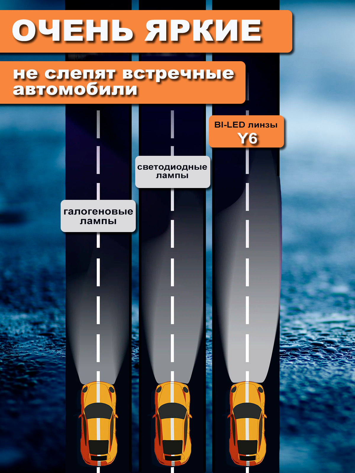 Отзывы на Автомобильные светодиодные LED лампы H4 с линзой, Y6, 5500 К, для дальнего и ближнего света, комплект 2 шт.