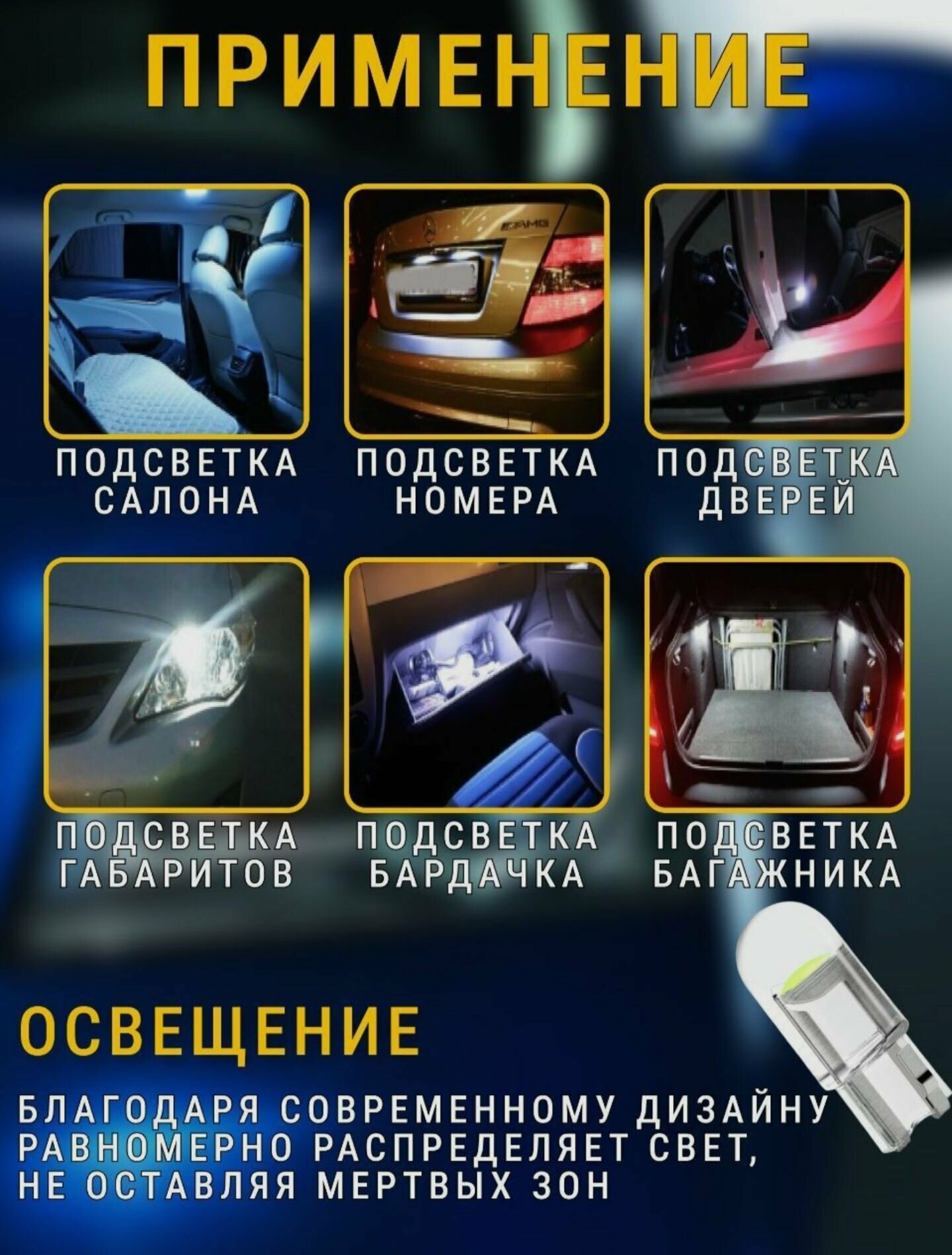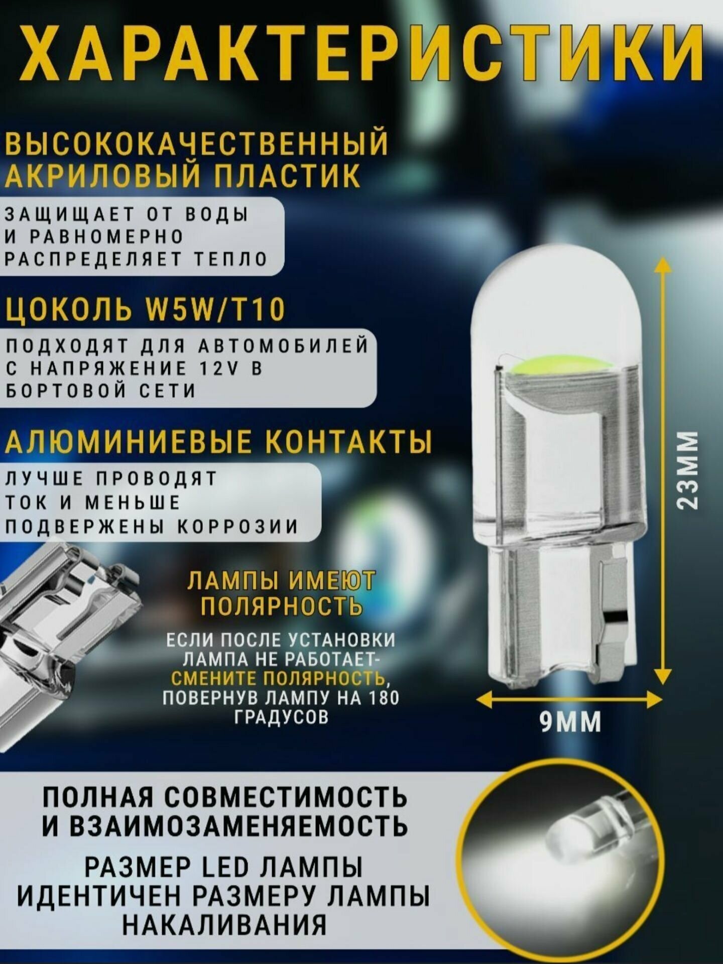 Лампа светодиодная габаритная 10 шт Т10 W5W 12V Белый свет информация: