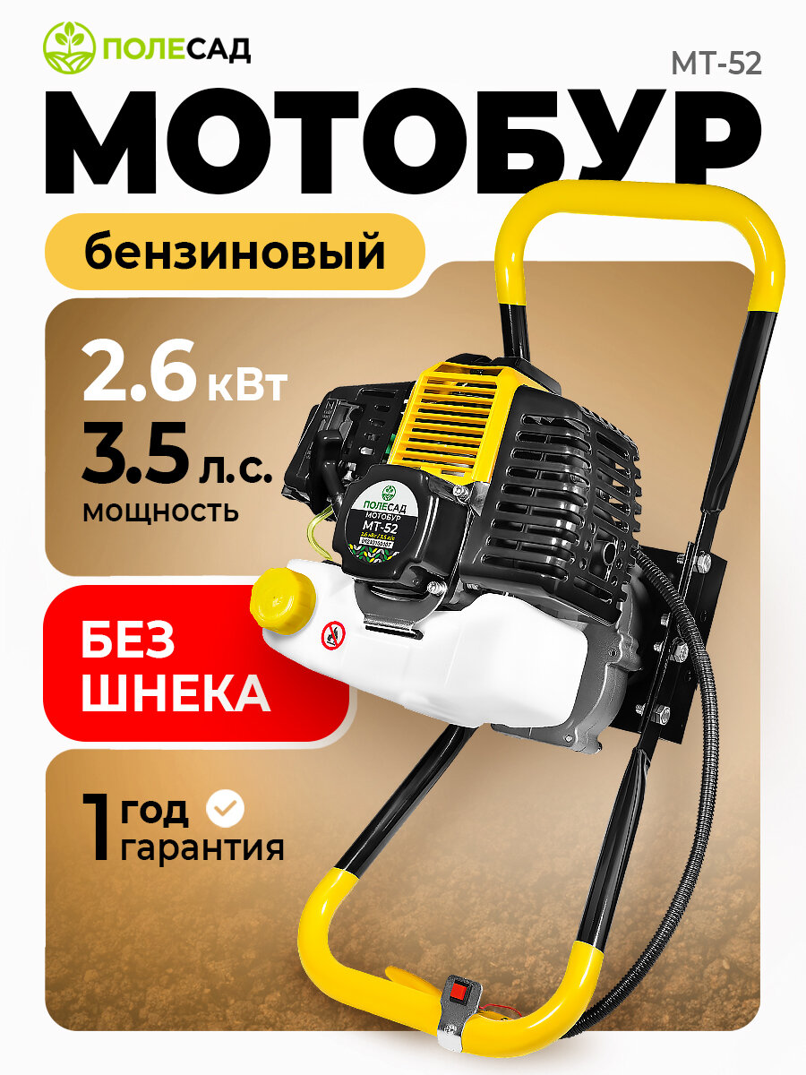 Отзывы на Мотобур шнековый полесад МТ-52 / бензиновая буровая машина/ ледобур 2,6 кВт, 3200 об/мин