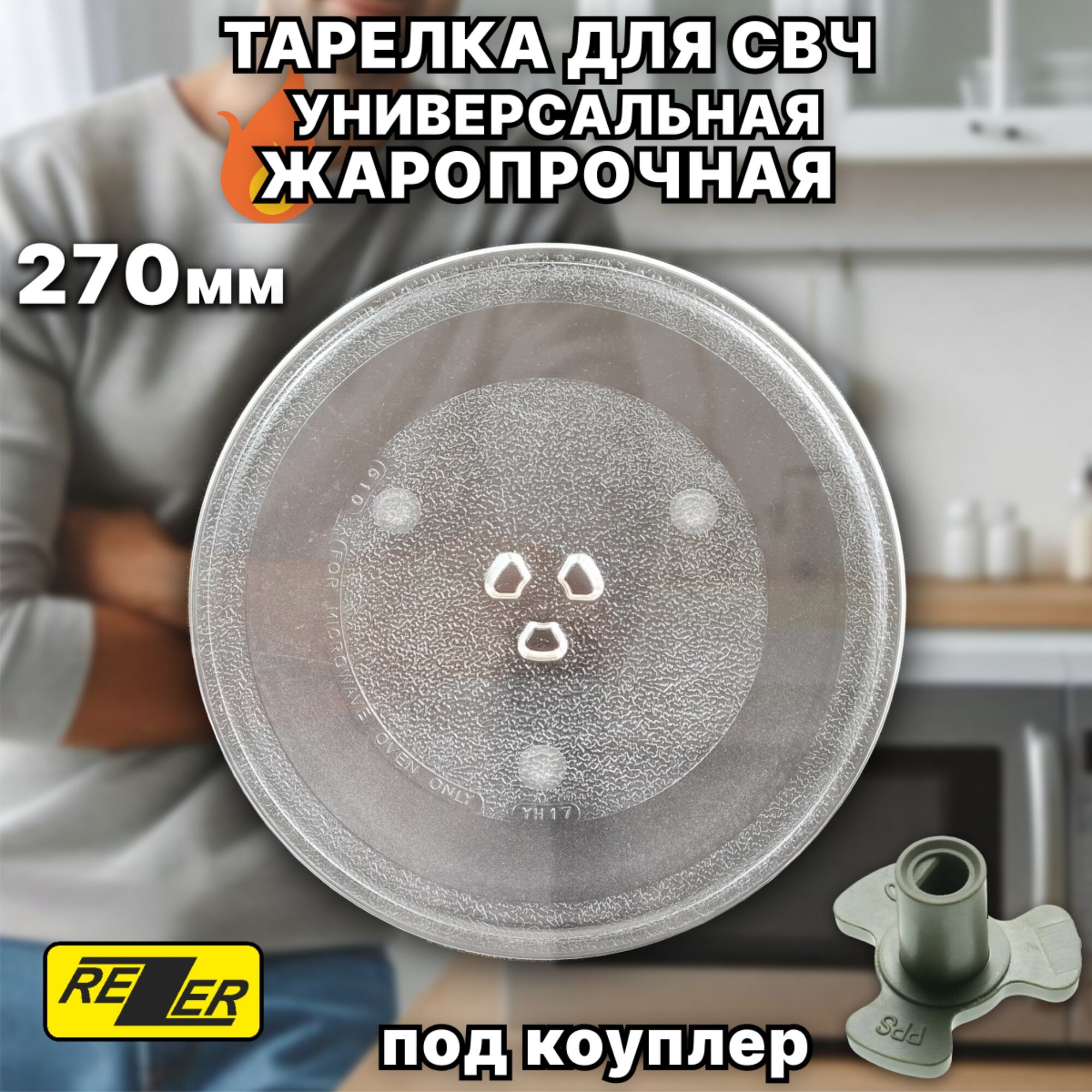 10 цен на Тарелка универсальная Rezer для микроволновой /СВЧ печи 270мм, тип вращения - коуплер, для СВЧ - Panasonic, Samsung, LG, Midea, Горизонт, Bork и т.д.