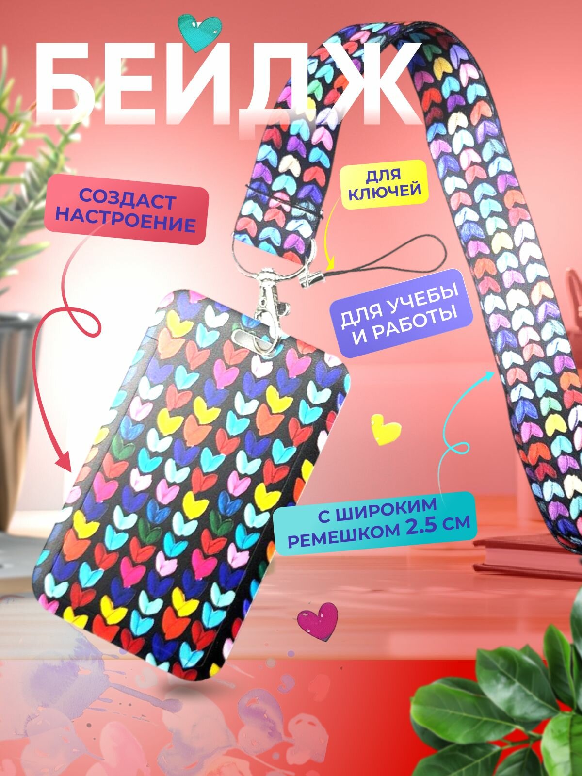 Чехол для пропуска с лентой на все случаи жизни. Бейдж вертикальный Сердце. Держатель для карт и пропусков. информация: