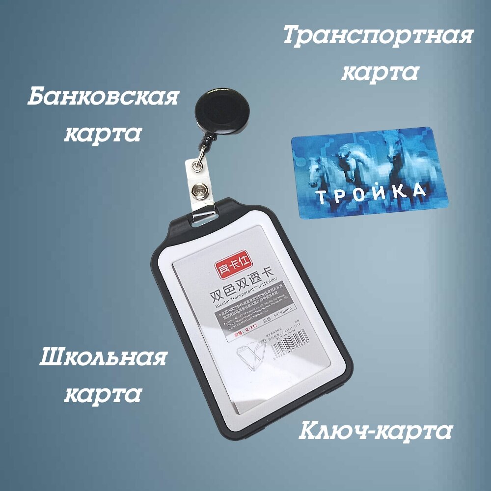 Чехол для бейджа/пропуска вертикальный (черный) информация: