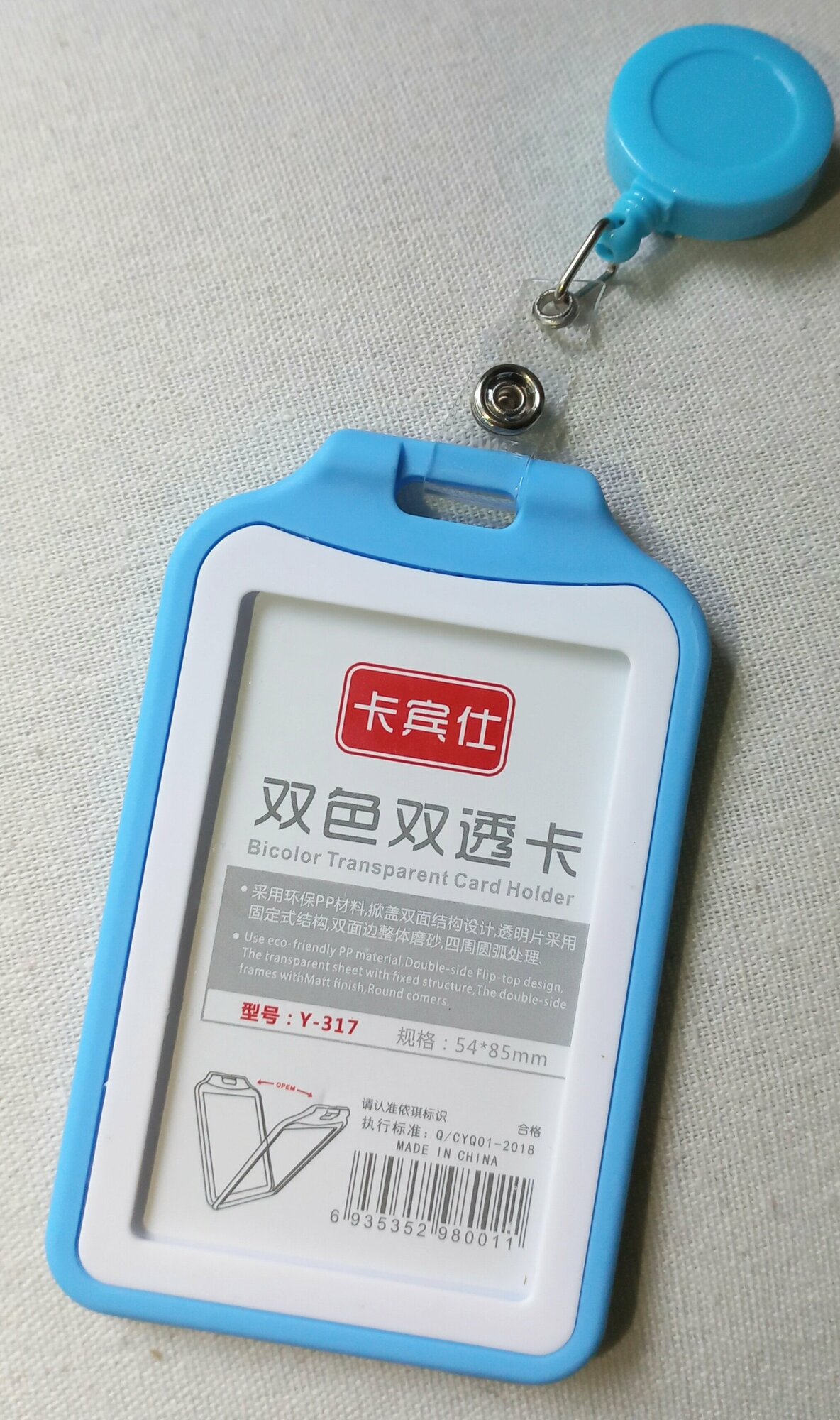 Чехол для бейджа/пропуска вертикальный (голубой) информация: