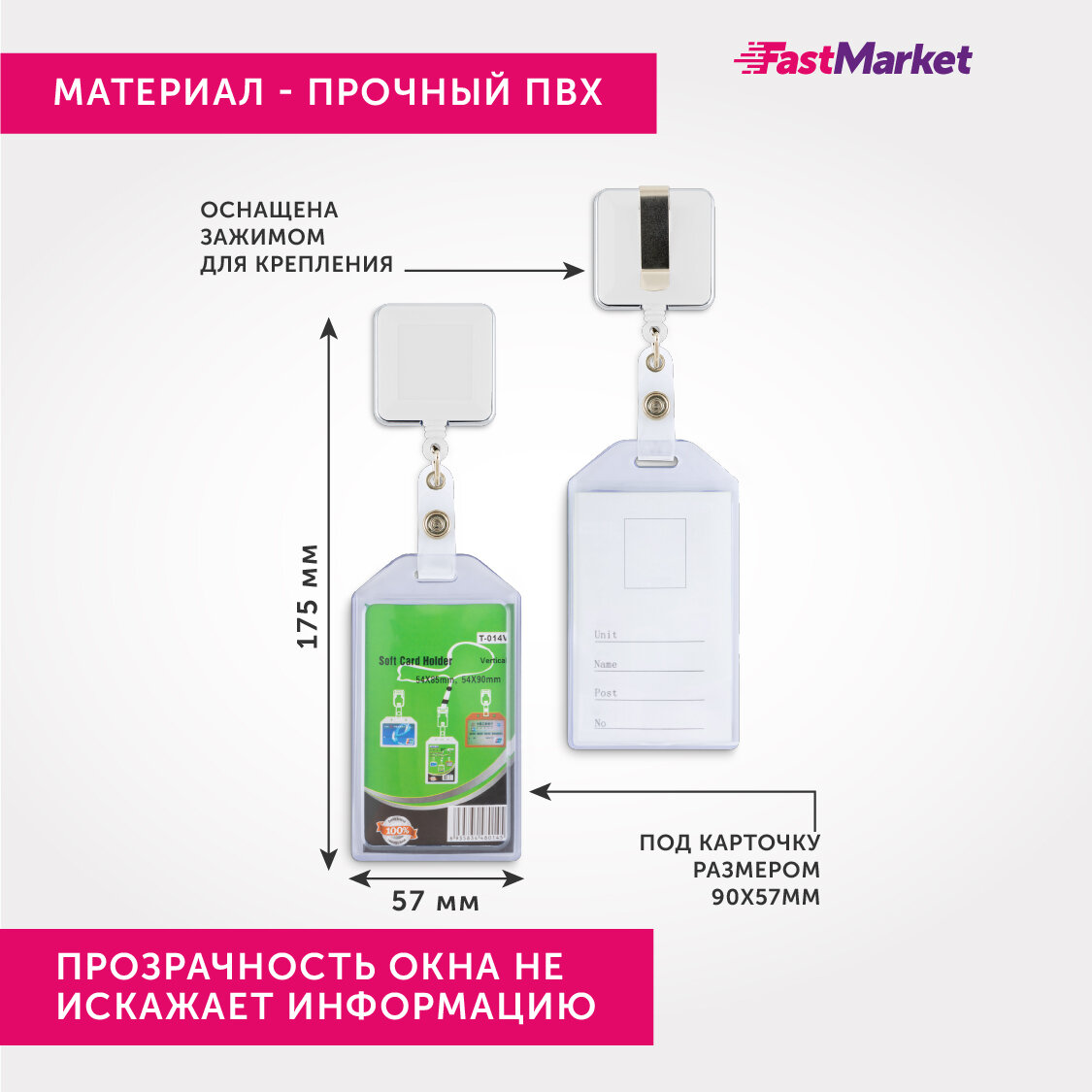Отзывы на Бейдж для пропуска FastMarket, чехол держатель пластиковый с рулеткой, бейджик для школьника, цвет белый