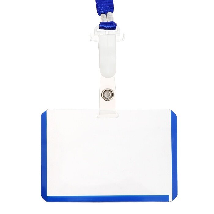 10 цен на Бейдж-карман горизонт. внешний 100*68мм, внут 85*54мм,пластик, синий,синяя лента 80*1,2см