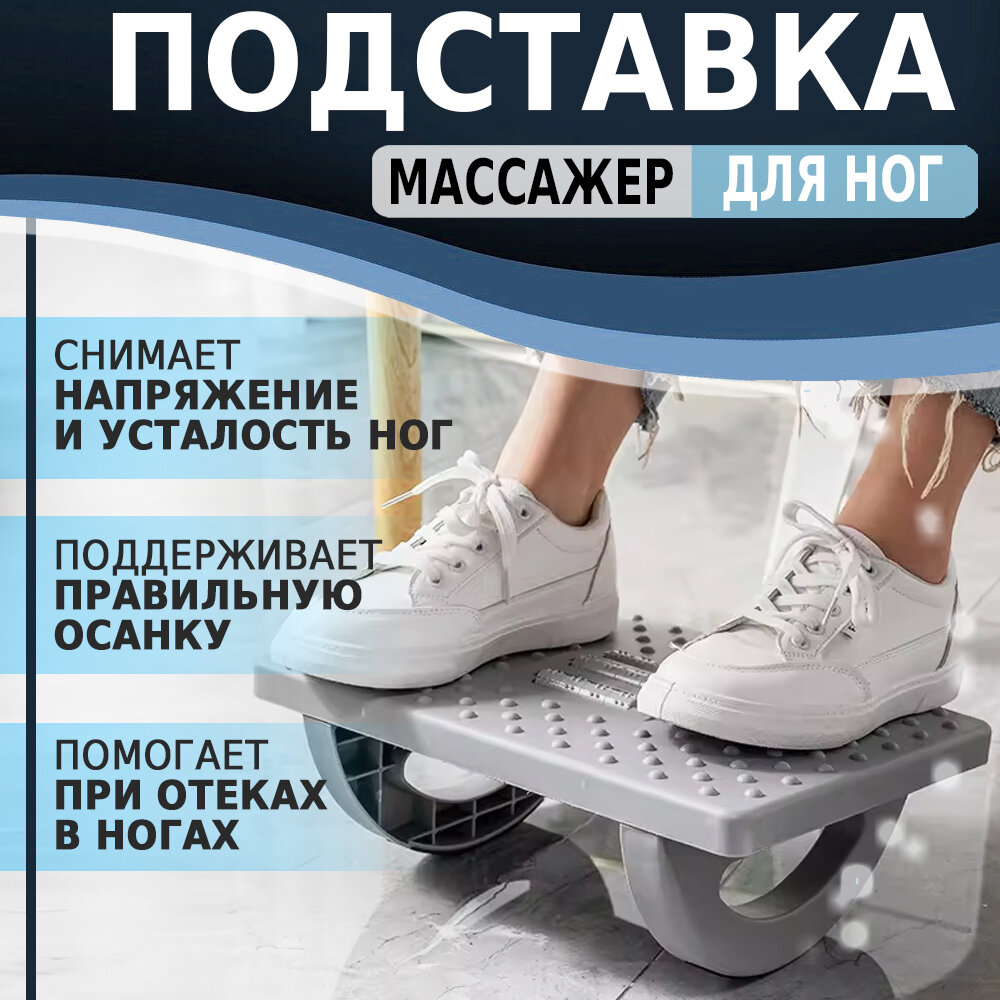 Отзывы на Подставка для ног офисная с массажными роликами качающаяся Londvi, цвет серый